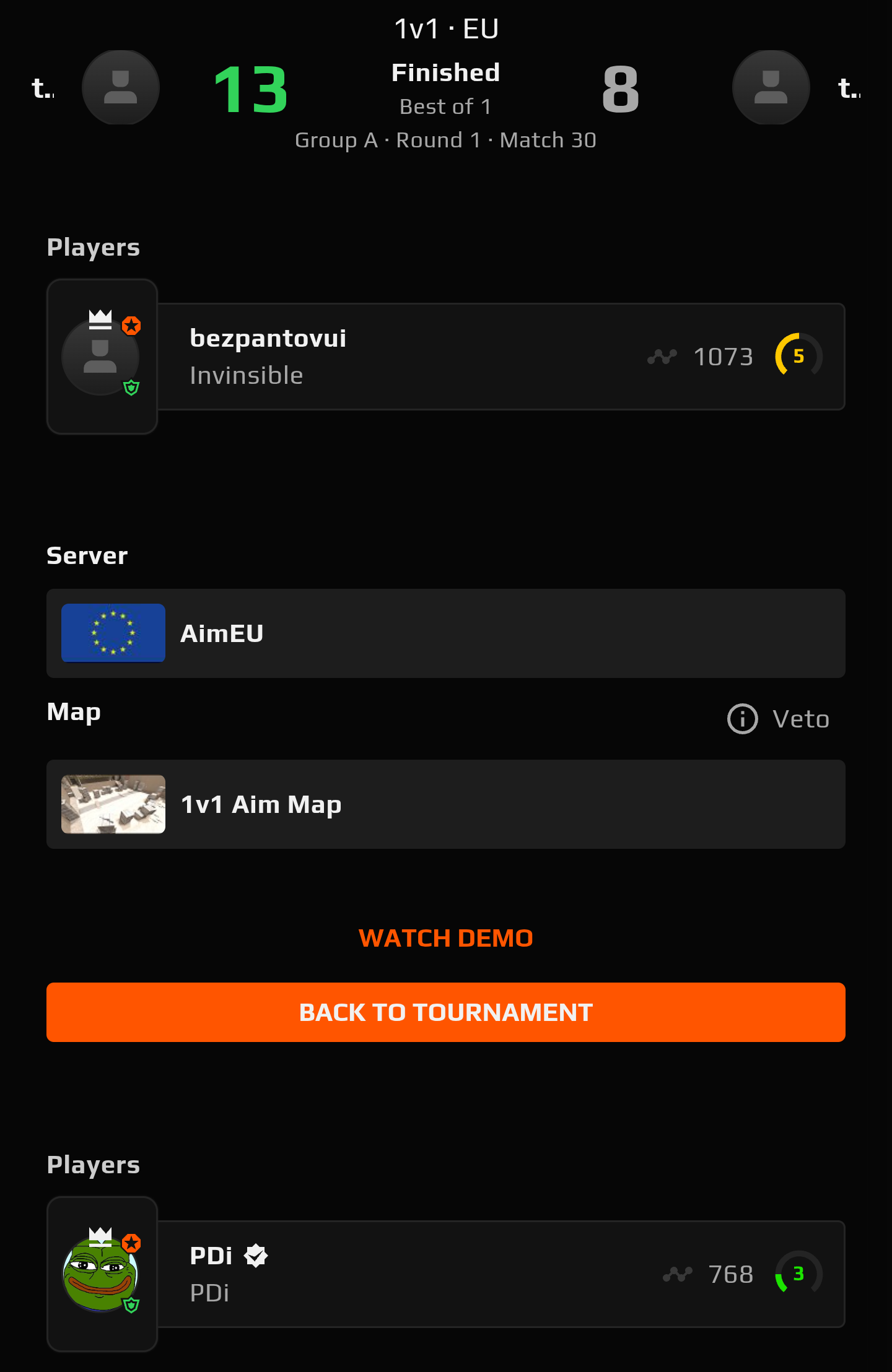 Начали играть, критикую чувака за его кривую игру, что он вместо того чтобы делать что-то, где-то стоит дрочит, а не помогает и мы проигрываем. А я на последнем месте, не могу разыграться, сдыхаю по тупому все время. Он мне, типа, хули ты там пиздишь лоу таб. Конец игры, с допами выиграли, я на первом месте - 29 фрагов, а он на предпоследнем. Ебало его можете представить.