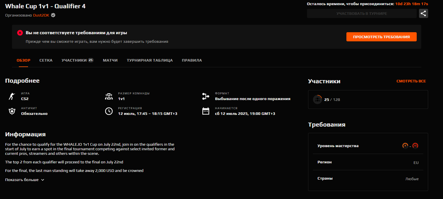 For the final, the last man standing will take away 2,000 USD and be crowned champion of WHALE.IO 1v1 Cup 2025