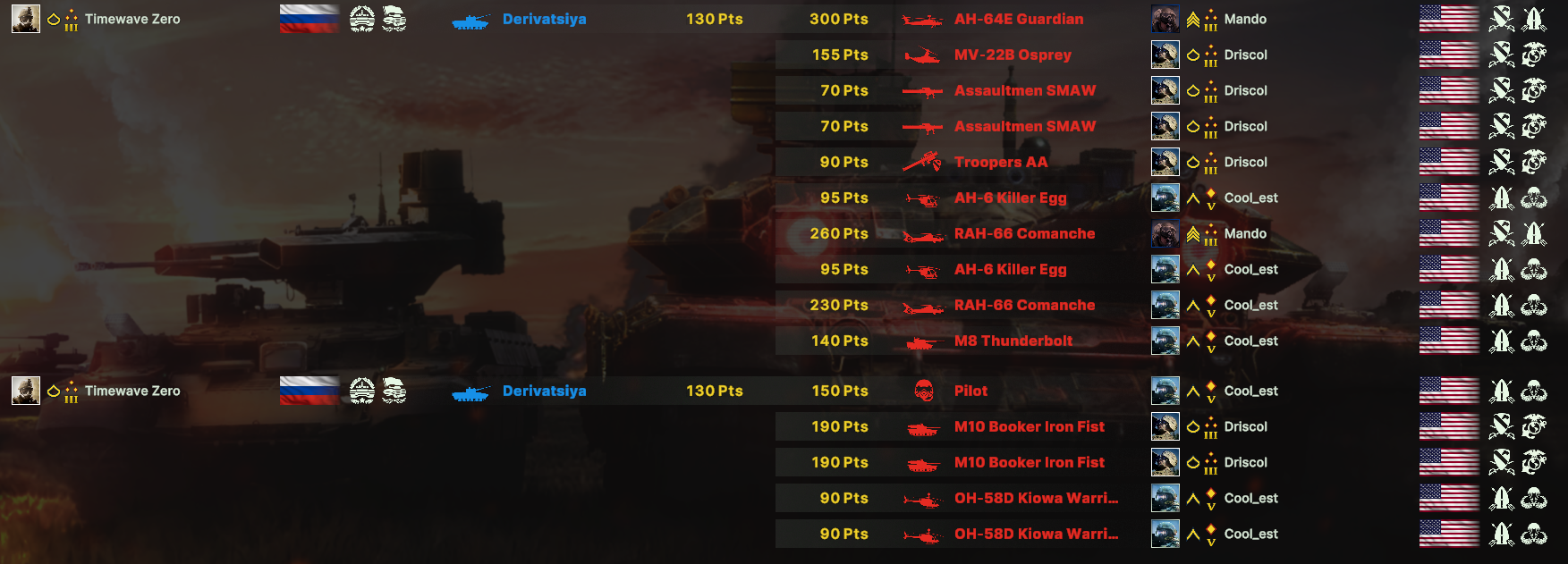 Хуя довничи выше срут что США кал когда они ни разу не играли против норм челов с декой США, где по кд ебут броулеры с противорадарками, ф35 точечно кидают бимбы на тебя, как только твои танки останавливаются. а10 по 2 штуки летят и анигилируют тебе всю технику в радиусе.