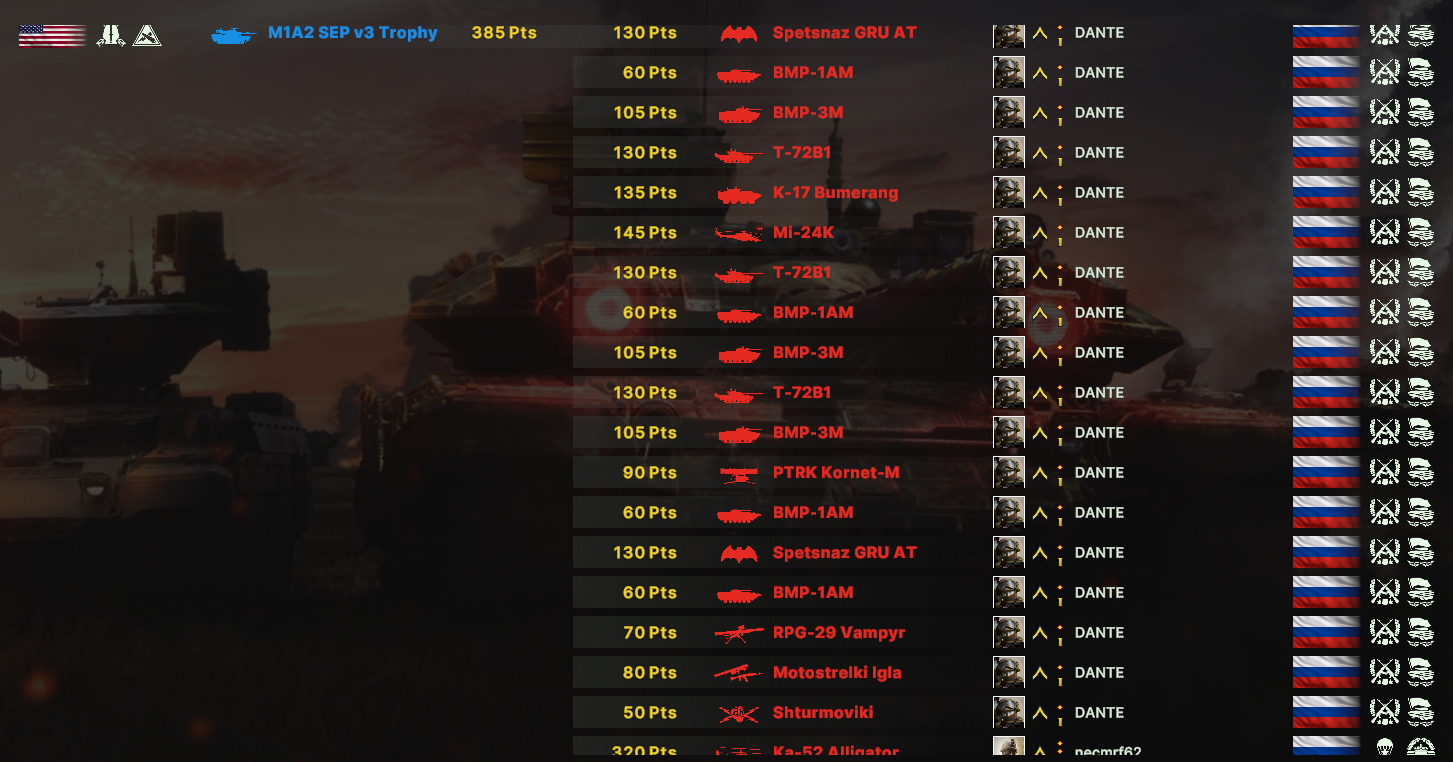 Знаете что я скажу? Пиздец РФ переапана, лол. И ебал я играть зеркало РФ. Как же у меня щас дрожали рученки когда мы на топорах рубились мои Т-90 против его Т-14. Но у меня была поддержка в виде 4 взводов карнетов.