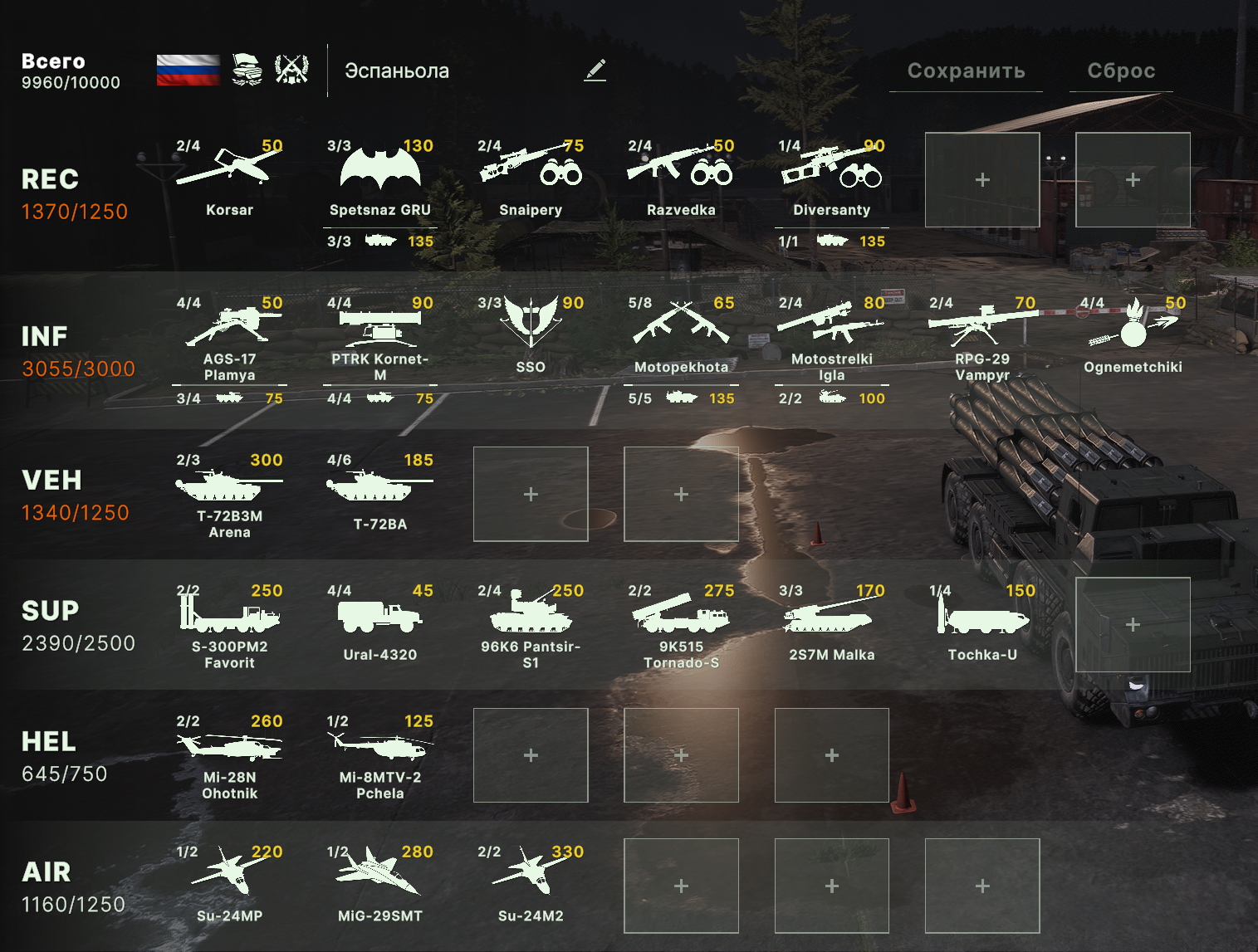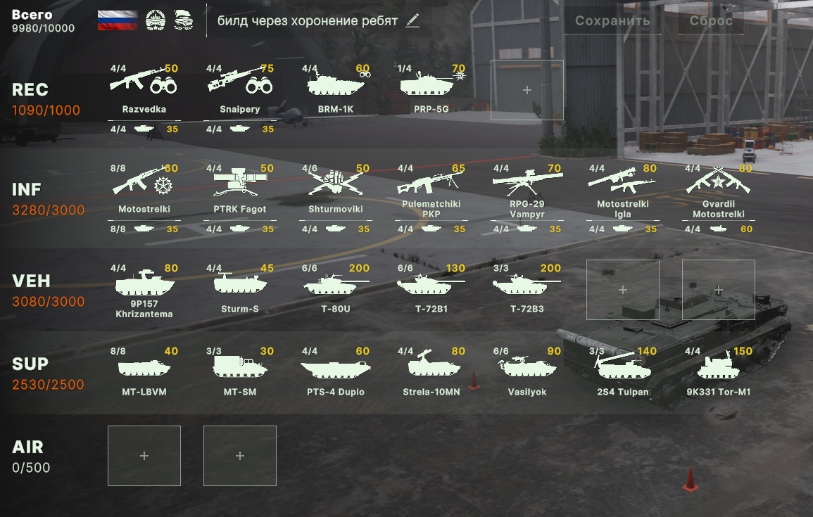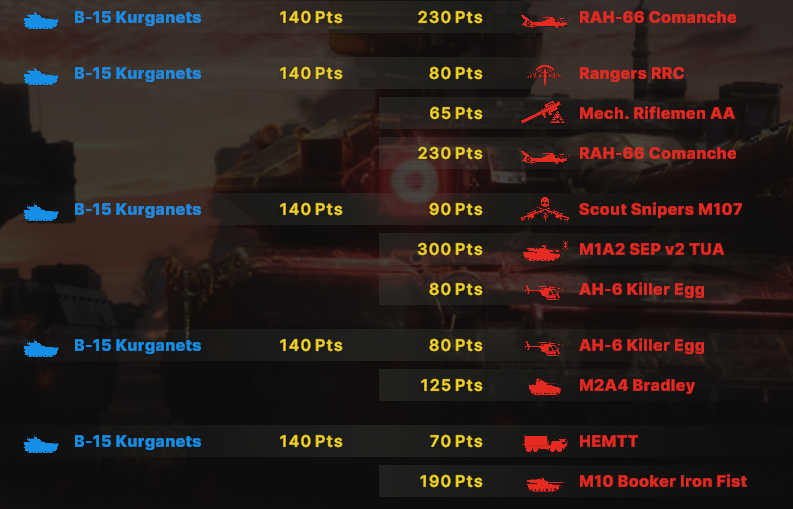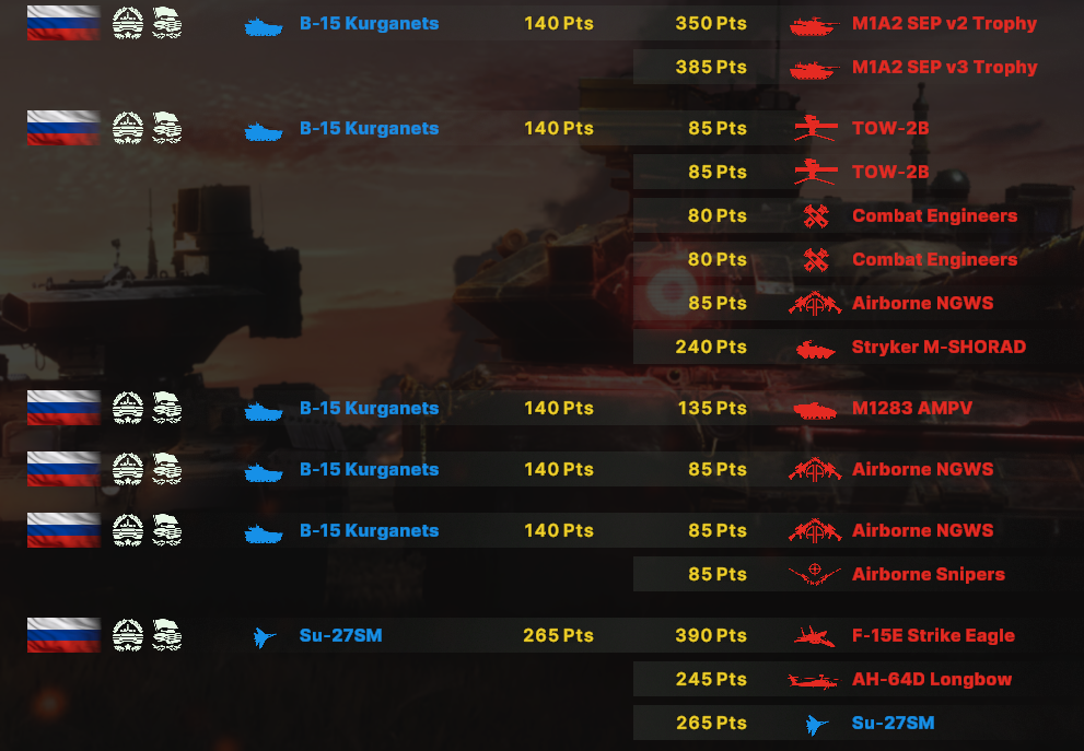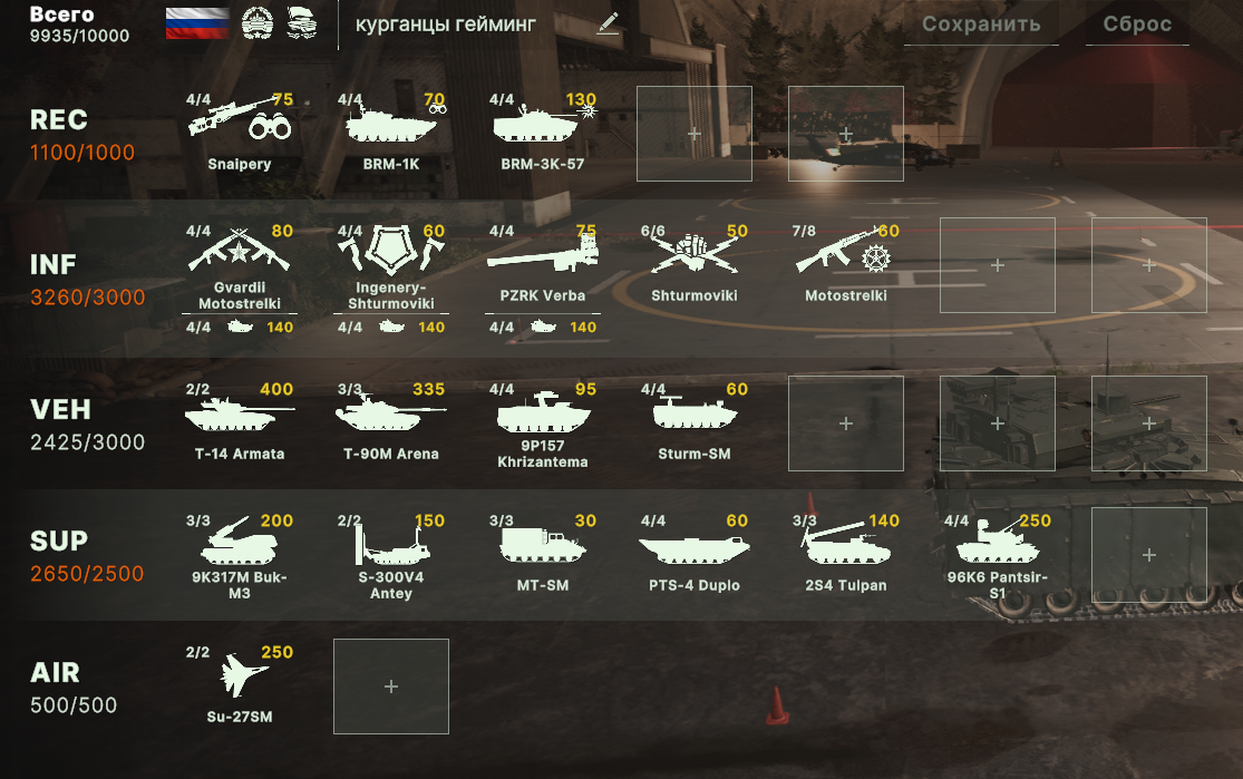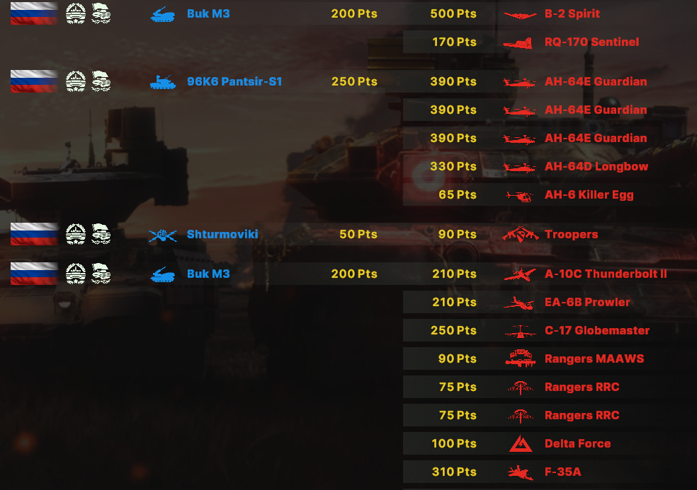 Блин, бесит ограничения по юнитам, что нельзя из всех армий набирать. Искуственное и бесполезное. Вот мне нужен Ту-160 и Т15 и грады и с300, почему нельзя.