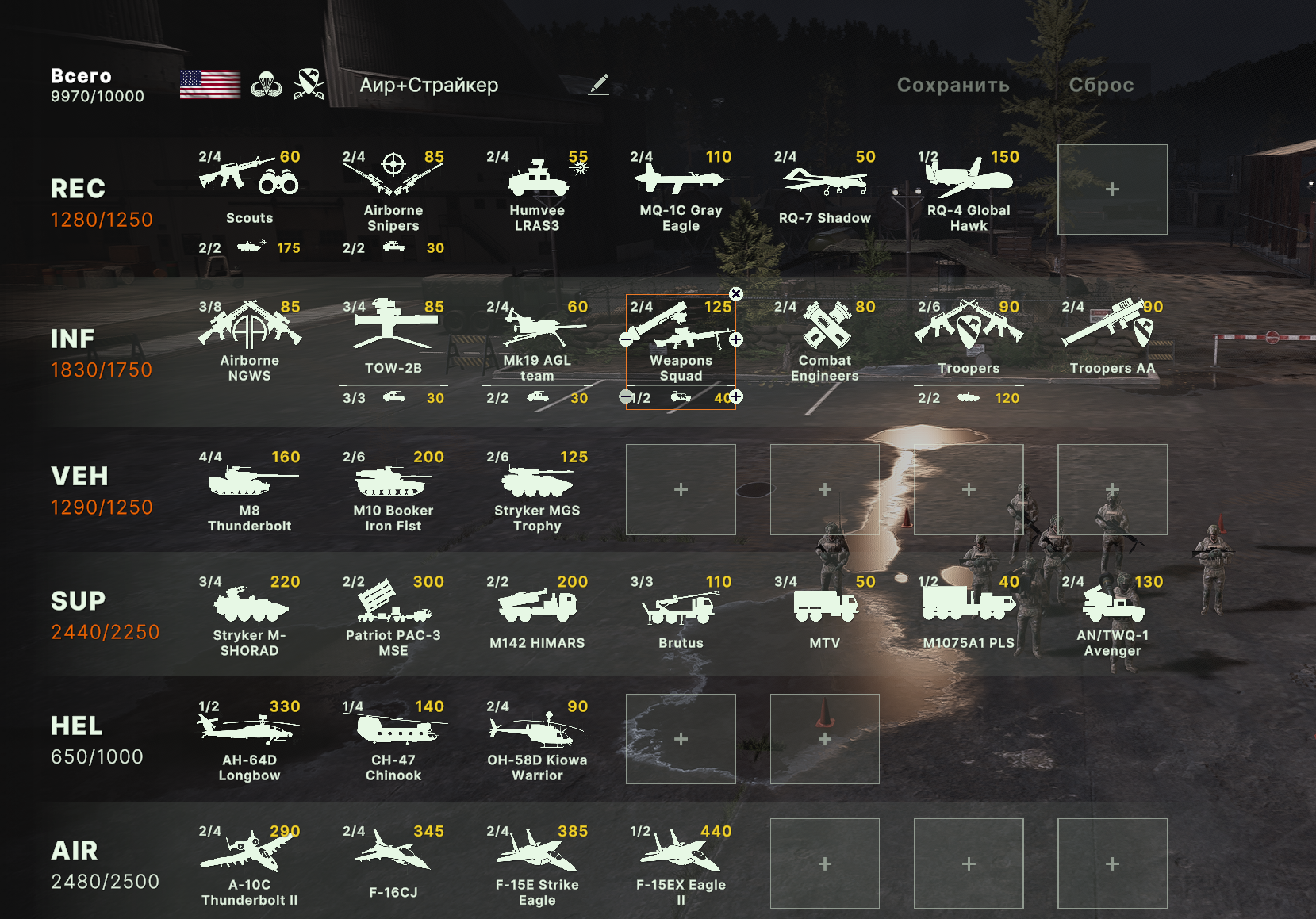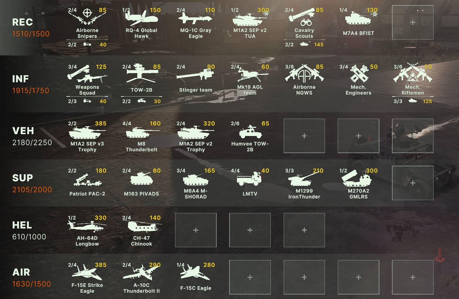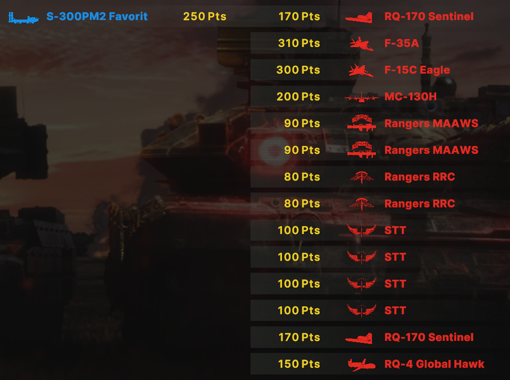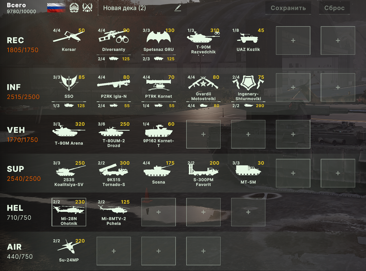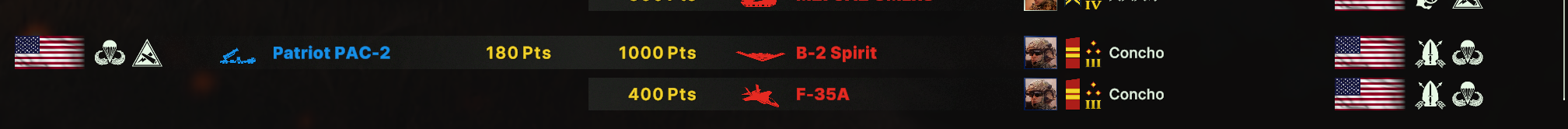 Блин, бесит ограничения по юнитам, что нельзя из всех армий набирать. Искуственное и бесполезное. Вот мне нужен Ту-160 и Т15 и грады и с300, почему нельзя.