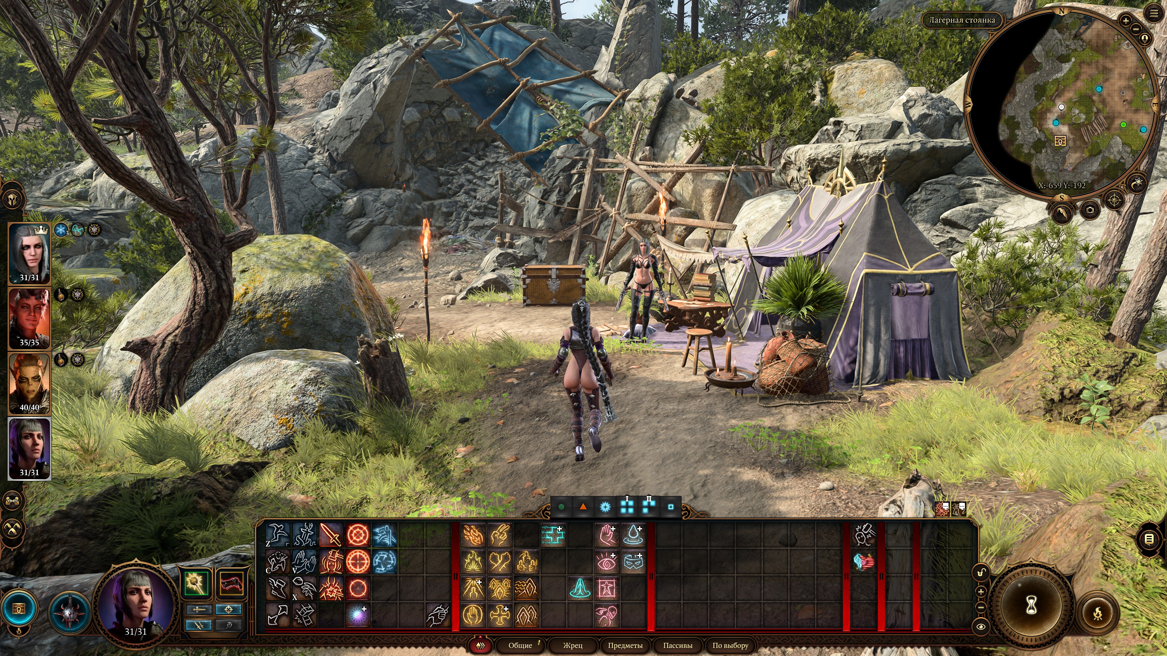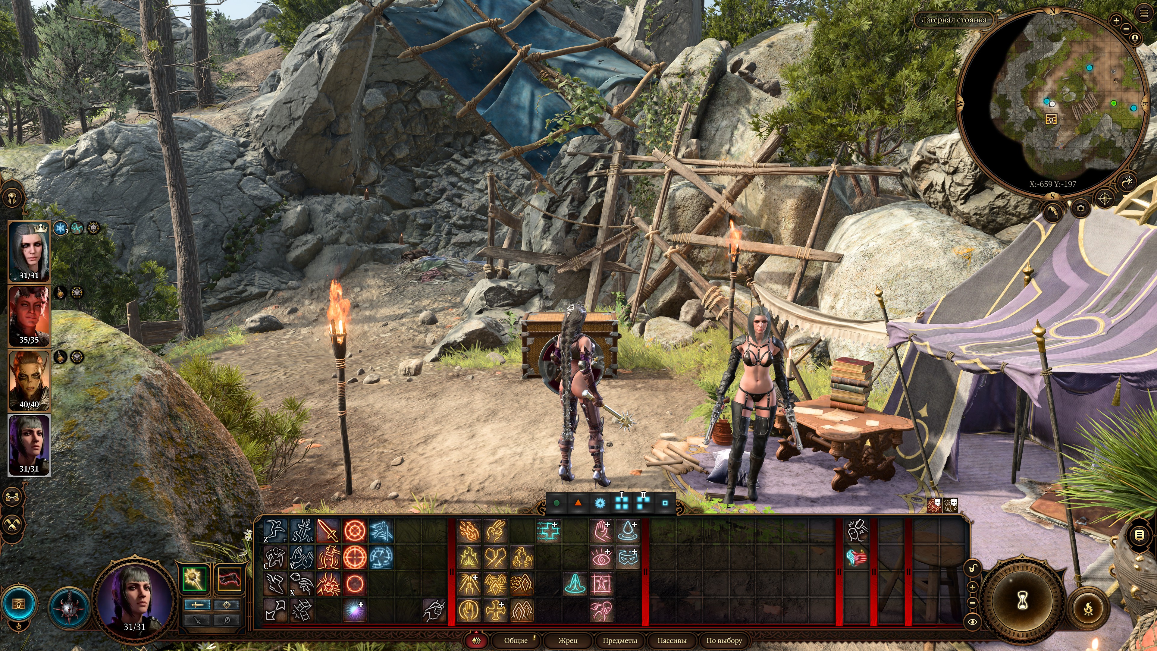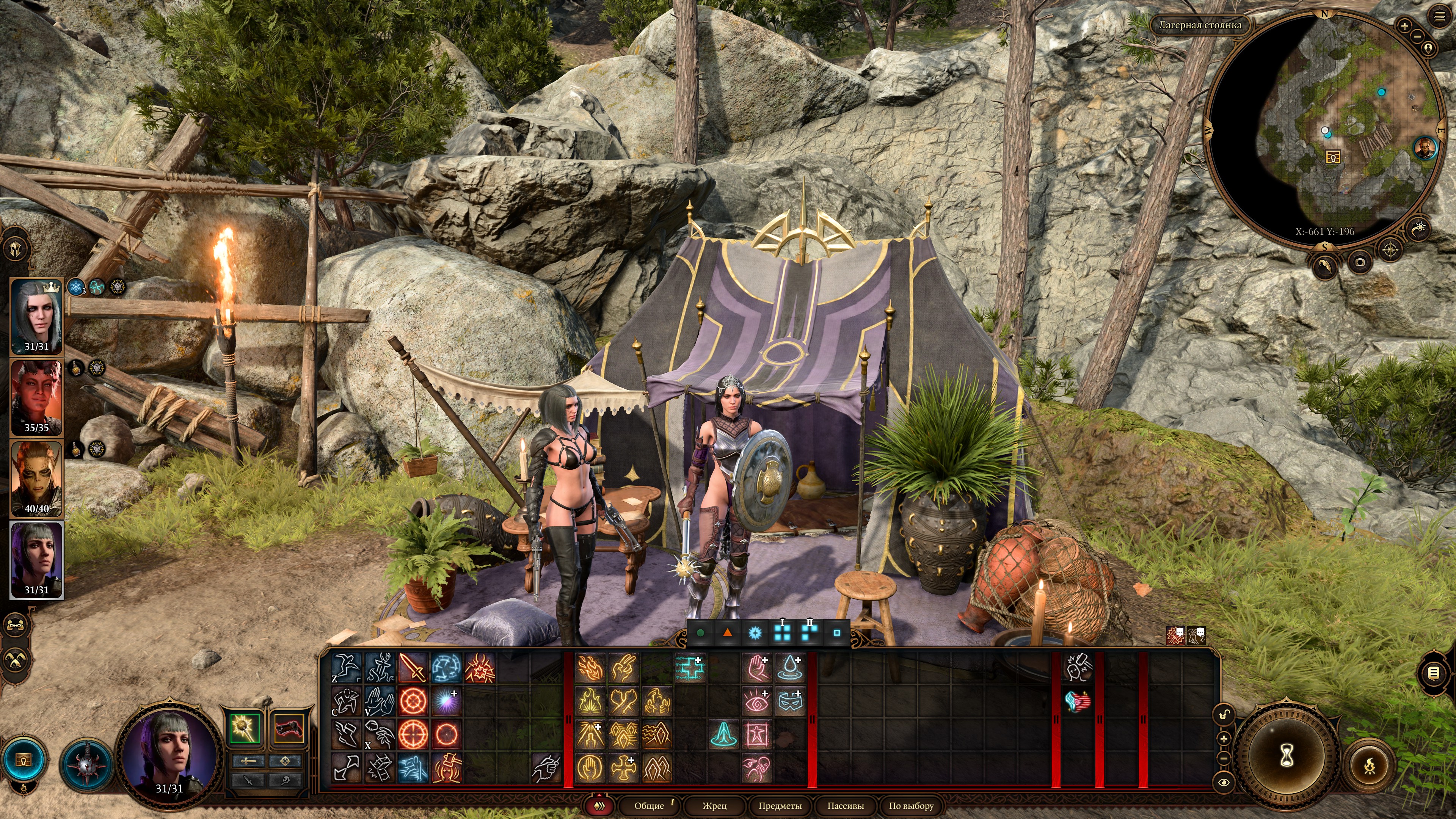 Да и даже если нет еды, ты можешь не есть и все равно восстановишь 50% ресурсов. Если нужно проскипать диалоги в лагере, то спокойно можно не есть и спамить отдыхи, ничего плохого не случится.