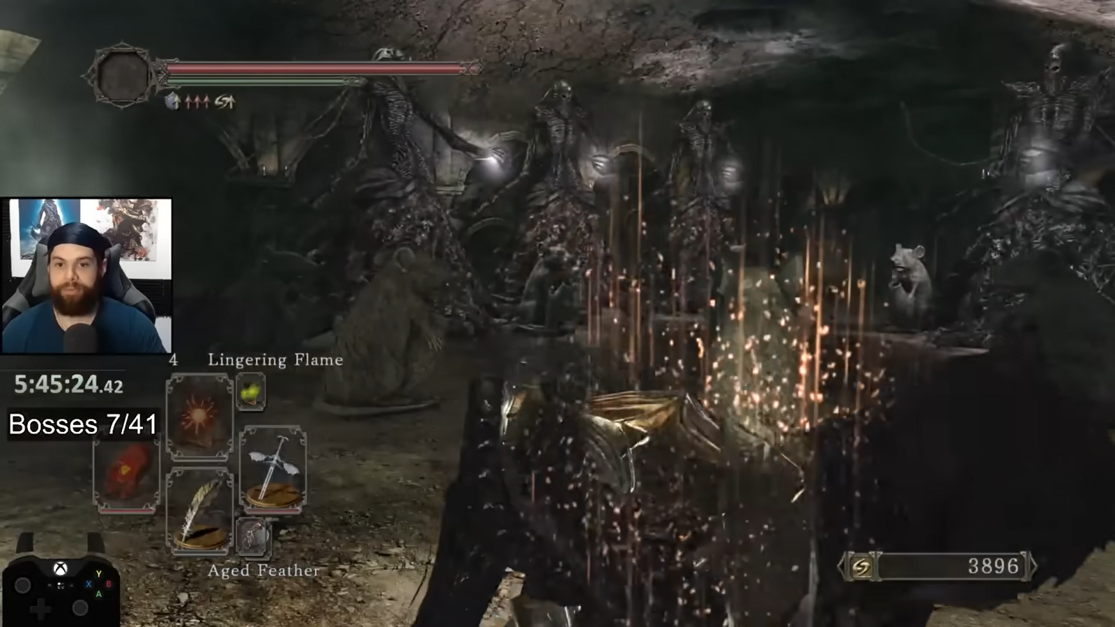 Блять. Когда я убивал демона принца 6 минут, нанося мечом волчьего рыцаря по 280 урона в первой фазе и по 130 во второй, я думал это долго. Когда я убивал Гаэля 5.5 минут, нанося по 263 урона алебардой черного рыцаря, я думал это долго. Но усиленный Разумный мор это просто пиздец. В общей сумме за Уайлдера в соло я убивал его 12 с половиной минут. Это, наверное самый долгий босс во всех сосаликах от бабадзаки, по крайней мере в дс1, дс3, элдене и секиро я не видел таких долгих боссов. Еще и резисты ебанутые