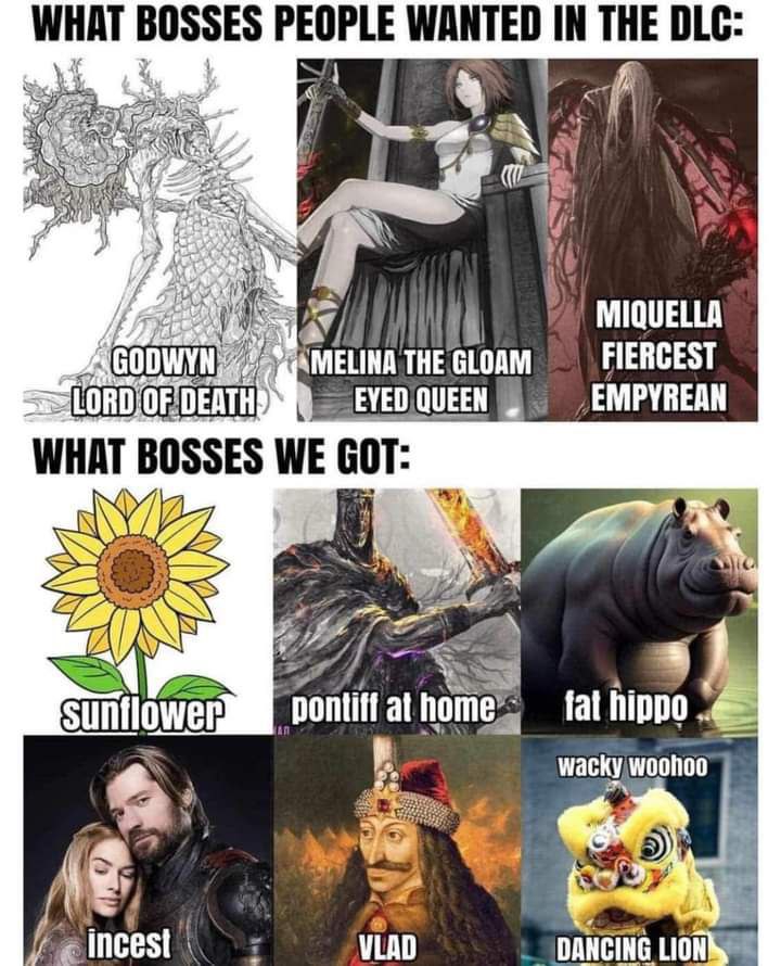 >>49979808 Да пиздит он про длц, боссы там в целом хорошие. Кабаньеро просто мутный босс который вроде как заточен на верховой бой или хз что они пытались сделать с ним. Но те же месмер и бейл это топчик в своих категориях.