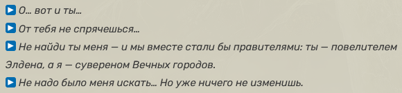 >>49979530 Да забей. Подача лора в играх от фромов и без того была ужасной, что ты мог пройти игру и не понять что вообще вокруг происходит. В Элдене это максимально всплыло наружу т.к там объем лора вырос в 10 раз а возможности его понять не выросли. А порой Элден занимается там что бессовестно множит сущности: Вот у тебя есть королева Марика. Ты думаешь что это самая важная центральная фигура во всем мире, потом нарисовывается Радагон, Пальцы, Зверь Элдена, Великая воля, Кольцо Элден, Древо Эрд. И все это +- фигурирует в одном контексте центральной фигуры. Вот нахуя так делать. И если в относительно Великой воли с Марикой можно выстроить какое-то понимание их взаимоотношений - зачем было втискивать туда Пальцы а потом и чтиц пальцев. Зачем было назвать древо эрд и кольцо разными названиями если одним древом можно было обойтись, просто потому что мы его визуально воспринимаем, а про какое-то кольцо только устный нарратив слышим. Большинство битв с боссами так же выстроены. Мы их убиваем не потому что нужно, а потому что оказались за стенкой тумана и босс выказывает свою враждебность. Кста Рикард вообще призывает объединиться с ним в катсцене, но потом все равно атакует. Я ебал.