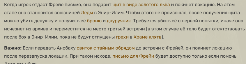 >>49979221 Ну, следующий участок её квеста как раз к месту по прогрессии на данном этапе игры. Если ты туда заявишься позже и всех будешь голым хуем гонять, это будет не очень интересно.