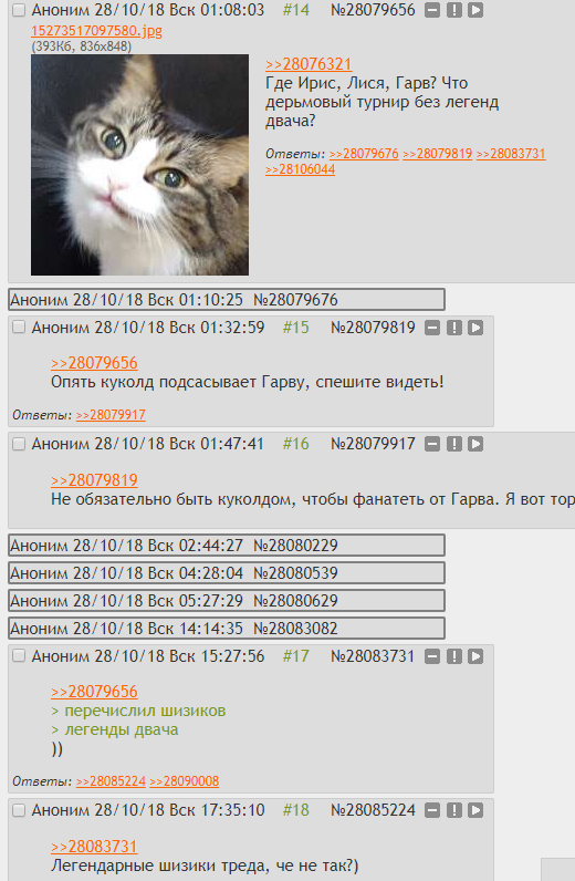 >>49765512 >в былые времена тред перекатывали буквально каждый день В былые времена тред можно было перекатить по нескольку раз за день, еще и срачи возникали по поводу нескольких новосозданных тредов и проеба нумерации. А сейчас никому ничего нахуй не нужно. Тред буквально театр сына шлюхи Гарва, да пары его подсосов и подражателей. Нихуя продолжают тащить этот труп я не пойму