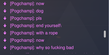 — если ты вежливо просишь меня свичнуть героя, то получаешь блок + репорт, если невежливо, то ещё и эвейд в придачу; — если ты просишь меня присоединиться к войсу, то получаешь блок + репорт; — если ты написал гг в конце матча, то получаешь блок + репорт; — если ты в принципе написало что-то, что мне не понравилось, то получаешь блок + репорт, думай дважды, чепуха; — если мне не нравится, как ты играешь, то получаешь репорт + эвейд; — если ты в моей команде и у тебя уровень <100, и ты не смурф (т.е. имеешь кд <4 в стате или не убиваешь пол команды врага в замесе), то получаешь репорт + эвейд; — если ты решило выгулять своего дружочка-лоускила в пати, то оба получаете репорты, а чмоха с самым высоким эло получает эвейд; Хочу заметить, что репорты складываются, то есть если ты плохо играешь и бухтишь в чат, то получишь два разных репорта, а так же получишь ещё копию этих репортов, если попадёшься со мной в следующей игре, даже если окажешься в противоположной команде.