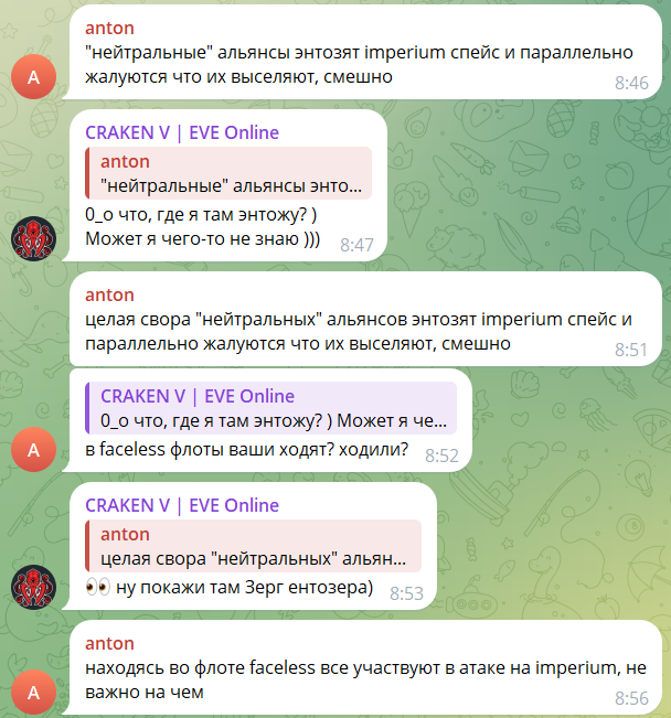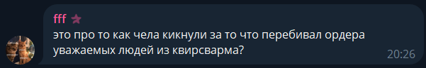 >>49856774 Камсулира русквадовского из видео выдавили из альянса за то что он мешал торговать плексами баренским англоязычным кабанчикам. При этом ему в лс написывал местный шериф, буквально запрещавший ему какать продавать плексы