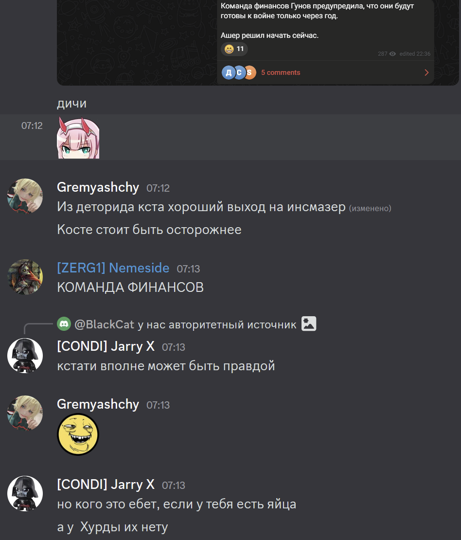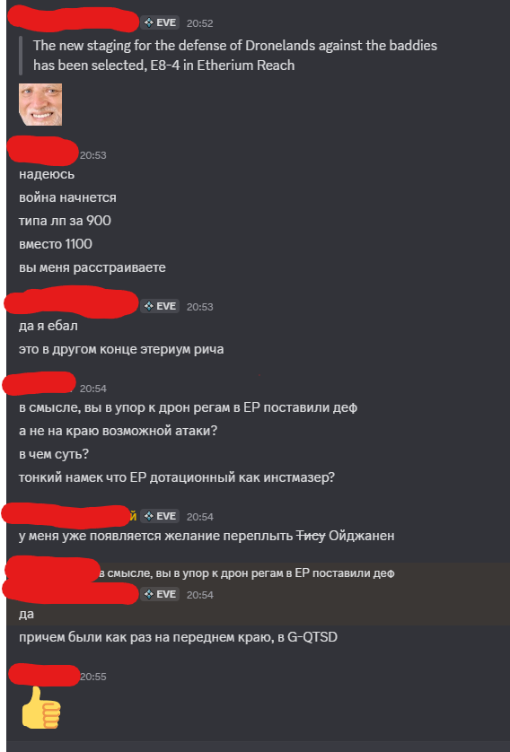 >>49864022 > Их стратегия против Империума работает как по часам У них был какой-то план и они его придерживаются. > Horde, как обычно, предоставляет противнику около двух недель на уничтожение структур, избегая масштабных сражений с максимально возможными формами Goon-флотов. Эти регионы не имеют стратегической ценности и вообще дотационные. > У них снова есть пространство, которым они готовы пожертвовать — в этот раз это созвездие в Scalding Pass и регион Insmother. Удивительное совпадение - как раз там и напали! > Любопытно, что несмотря на весь хайп, а с участием Mittani он был особенно громким, Goon'ы не добивались ранее существенного продвижения. Более того, уже менее чем через две недели им приходилось отступить Чо несет. > Тем временем на другом фланге Империум теряет порядка 100 миллиардов ISK за последний день А хурда проебала 300, но об этом мы умолчим. > Horde может позволить себе обменять Delve на Insmother без серьёзного морального ущерба > В итоге PanFam будет стараться использовать любую возможность для эффективной обороны и ударов по Goon-флотам. Но, скорее всего, грандиозного боя в пространстве ангелов мы так и не увидим. А вот такую риторику я прям недавно по первому каналу слышал, но чот не сработало.