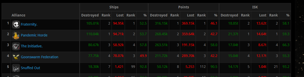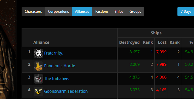 На данный момент мы наблюдаем передачу инициативы Goon'ам, что, впрочем, неудивительно. За последние годы Horde крайне редко вступала в бои с равными по силе противниками.
