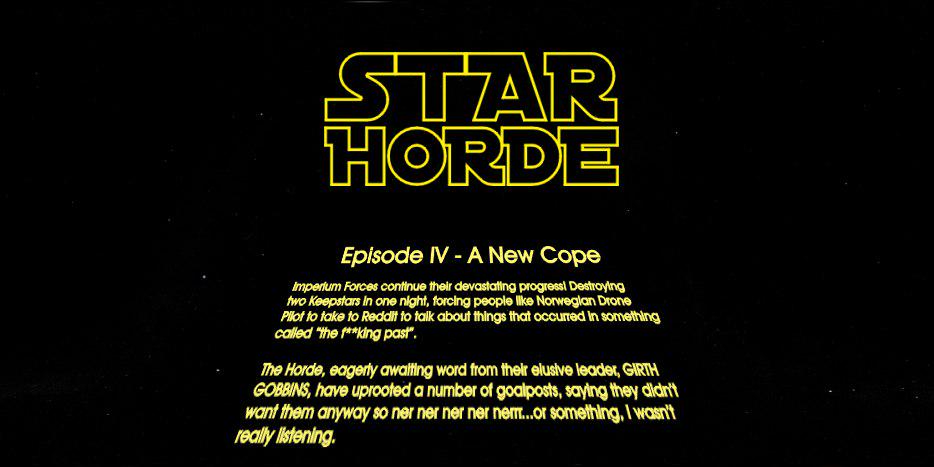 Horde, как обычно, предоставляет противнику около двух недель на уничтожение структур, избегая масштабных сражений с максимально возможными формами Goon-флотов.