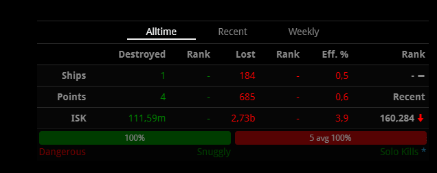 >>49851169 >выглядит будто хайсека там нет вообще получается все тру пвп нагибаторы из треда должны идти занюхивать фронтир, иначе они автоматически переходят в статус крабов и их мнение насчет минимальной суммы ущерба солокиллмейла и минимального количества таких киллмейлов у порядочного капсулира более не учитывается