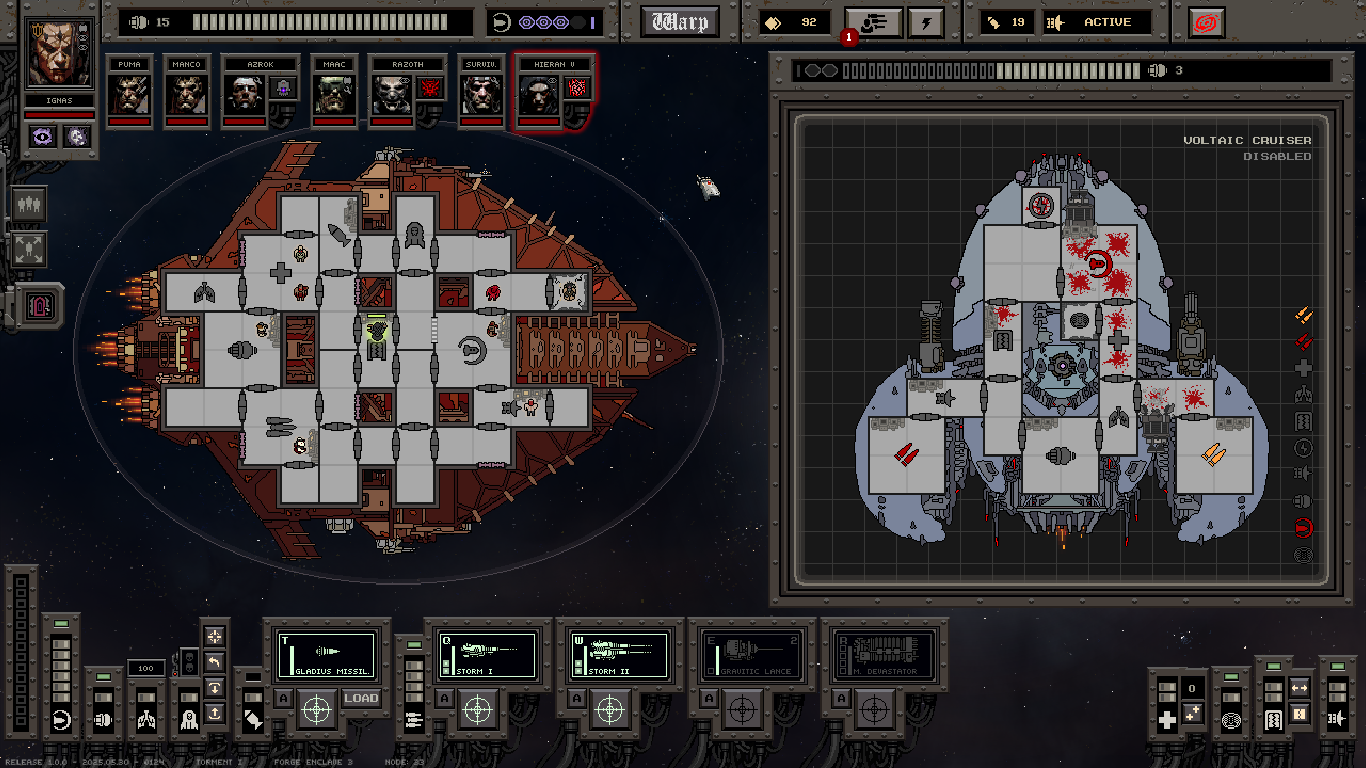 Олсо до последнего босса долетел легчайше тупо задочив кормбль под абордаж - повезло на модули, был модуль с 5-22 дамага команде врага на старте боя и модуль на дополнительные 15% лечения при пыжке. Плюс система которая станит всех в комнате. Плюс ведьма со спеллом на 15 дамага по комнате. Короч никто даже вякнуть не успевал.