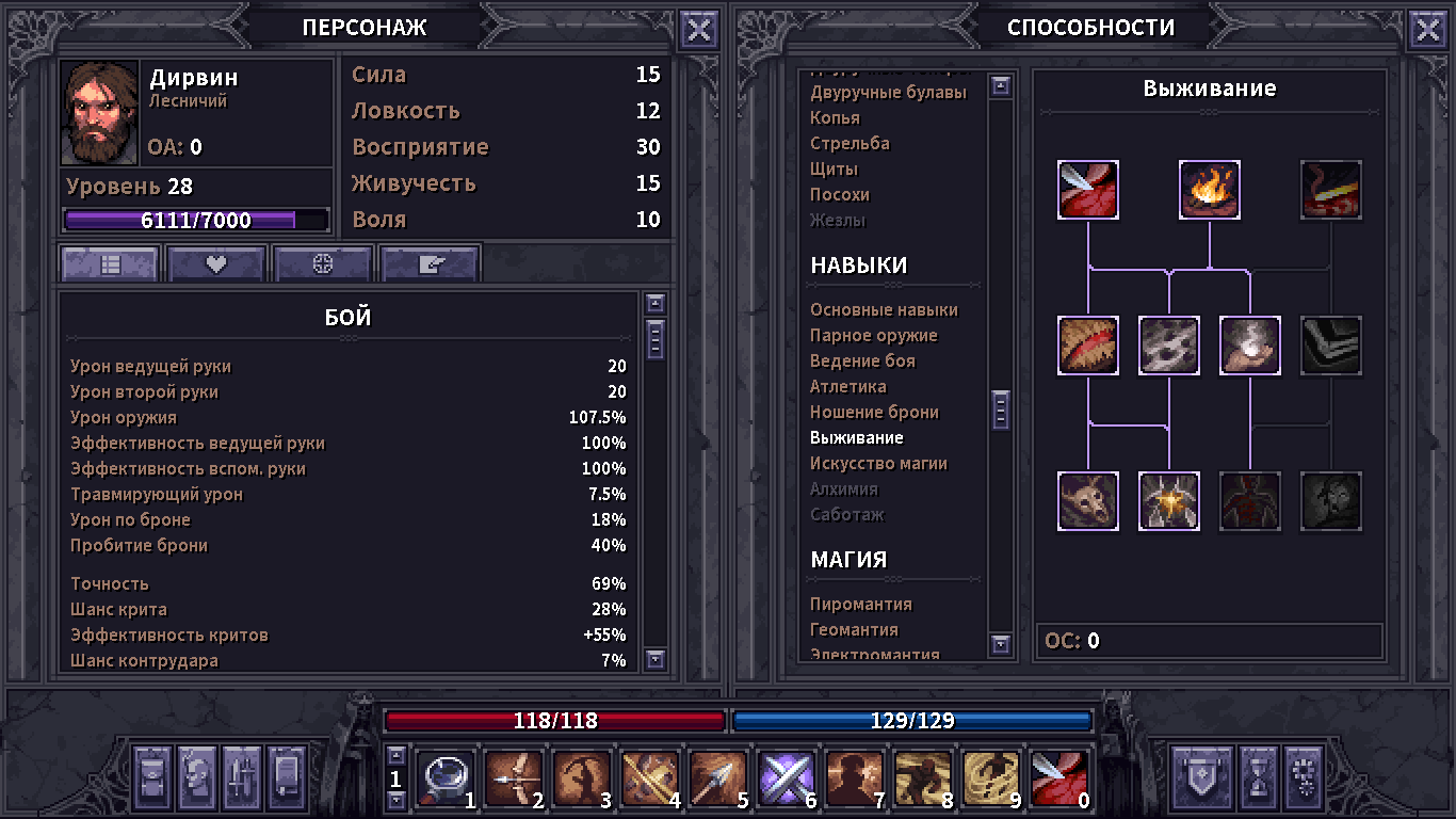 Почти докачал своего гигачеда Дирвина. Ебать он мощный. Быстрый фарм опыта за счет исследования мапы и + 1-3 скиллпоинта и атрибутов за счет вкачивания выживалки я вкачал только до 2 бонуса, правая ветка выживалки для него нахуй не нужна имхо. Лут зачетный конечно с т4 данжей. Че там в т5 данжах интересно. В прошлые разы мой максимум был т3 данж потом дропал, ибо начинал сосать.
