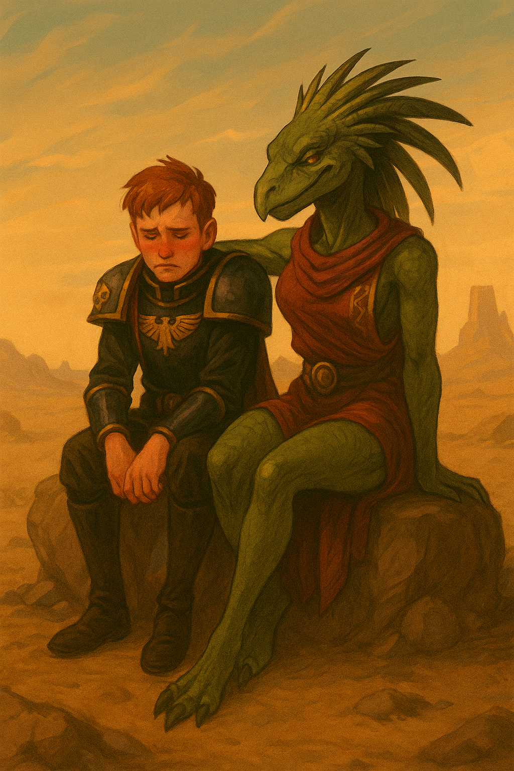 Буквально каждый сеанс игры мне в лицо выпрыгивает очередной сценарный гений совокота. Вот я освободил Ульфара. Он уходит из локации натурально в трусах, а в яме он уже одетый. Где он взял доспех космодесантника? Где взял поддоспешник? Как он вообще его надел? Я не супер силён в лоре, но доспех космодесантника на дороге Коморры не должен валяться, а надевание - вроде как целый ритуал. Я ролик на ютубе видел.