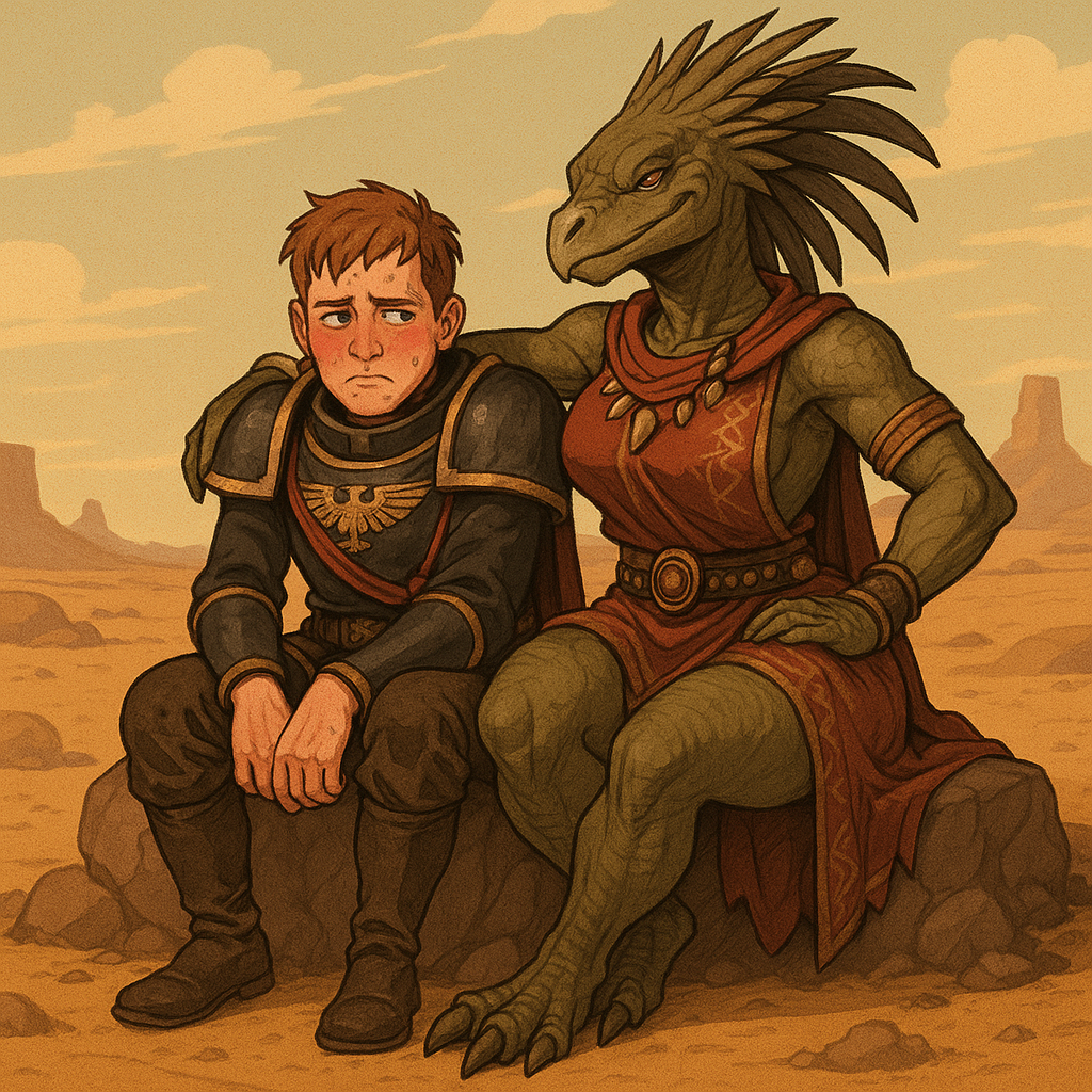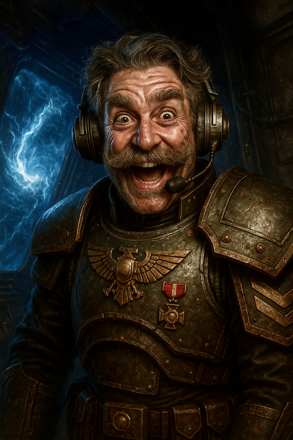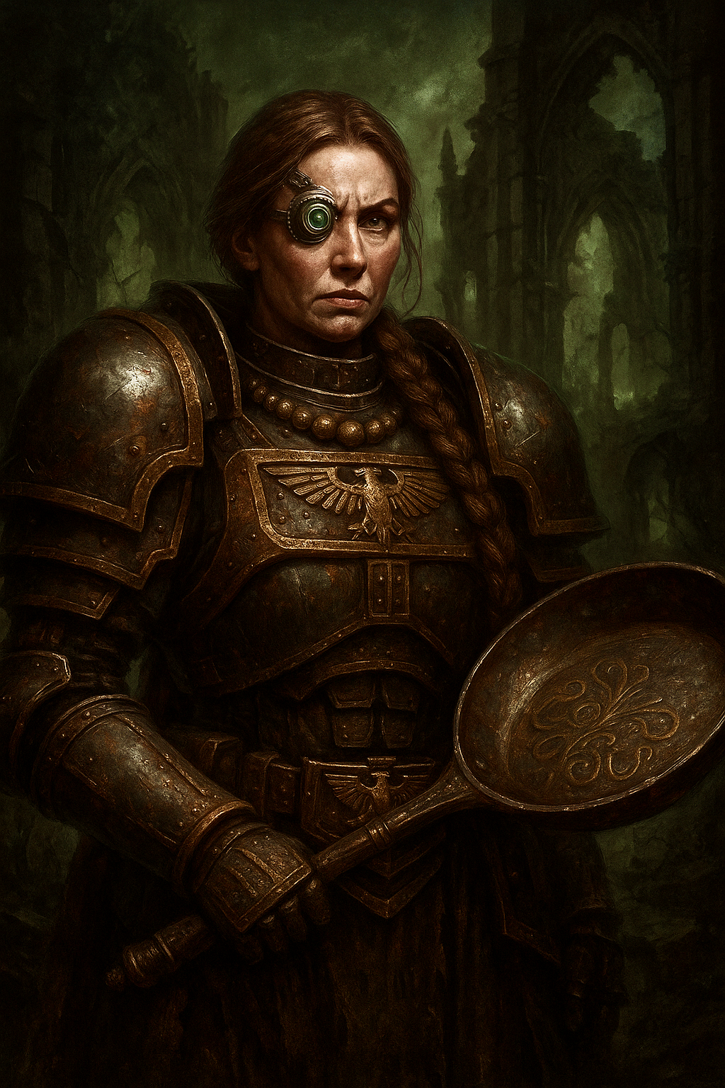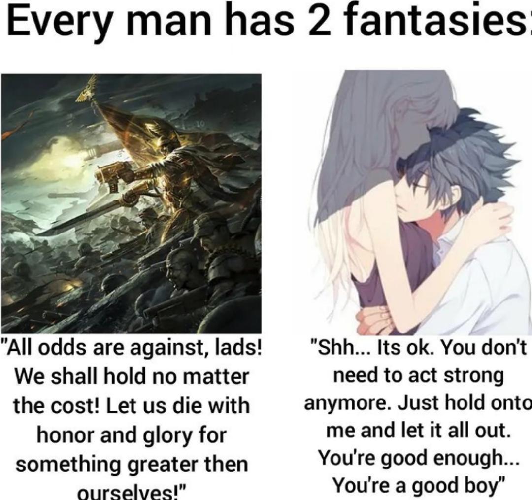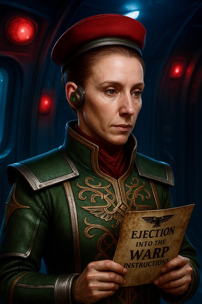 >Десантный челнок встряхивает от неожиданного скользящего попадания из зенитного орудия, томик «Тактика Империум», выполненный из отборного свиного пергамента, падает аккурат между ног Арженты, "Я такая неуклюжая", содрогается сестра битвы. >Сражаясь с турбулентностью, вы поправляете фуражку, подходите и запускаете руку промеж ее бедер, "Сомнение в себе есть сомнение в Империуме", улыбаясь замечаете вы, возвращая том.