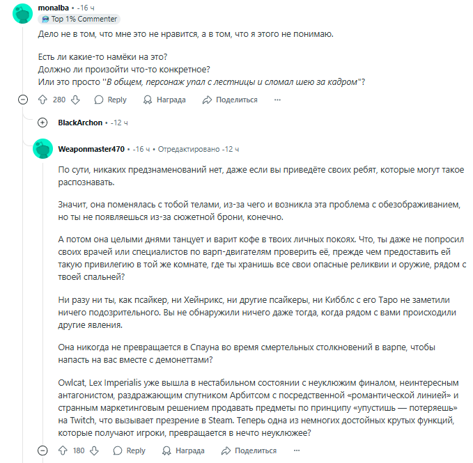 Надеюсь эпилоги для кибеллы тоже поменяют. Видел на реддите много претензий что персонаж и роман слишком фансервисные и эксплуатационные. Нужно добавить гримдарка.