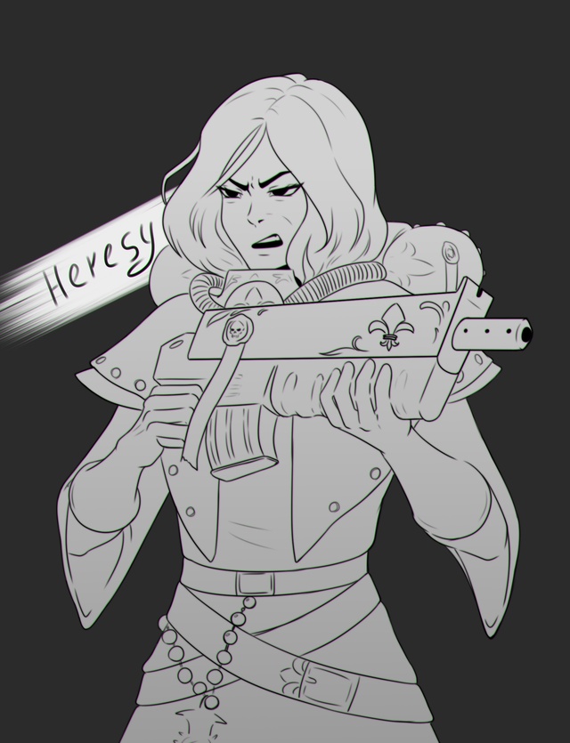 >Аржента берет вашу руку в свою тяжелую, закованную в керамит, горячую от любви Императора, ладонь. "Пойдем", легкая улыбка касается её губ, "Еретики еще не закончились", и мир вокруг вас меркнет.