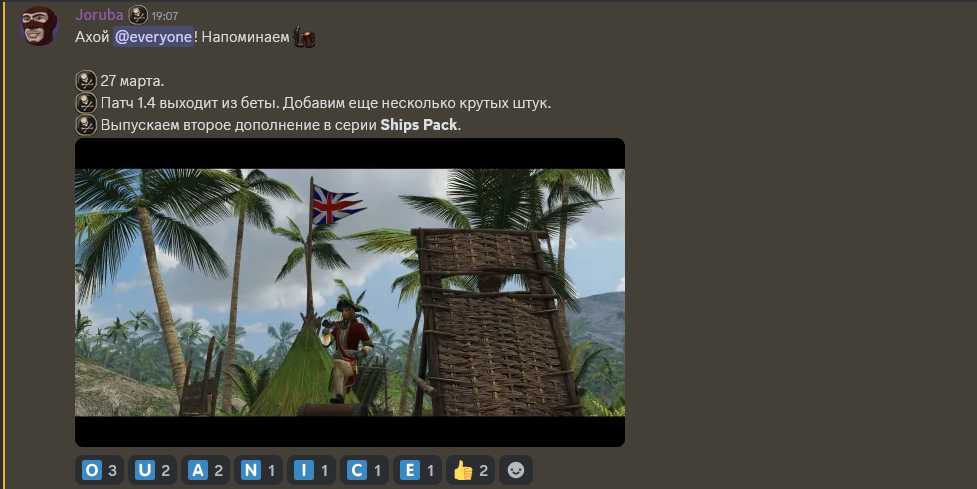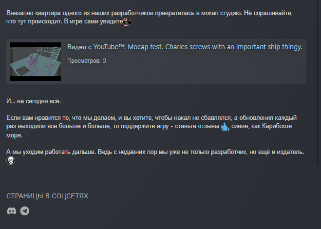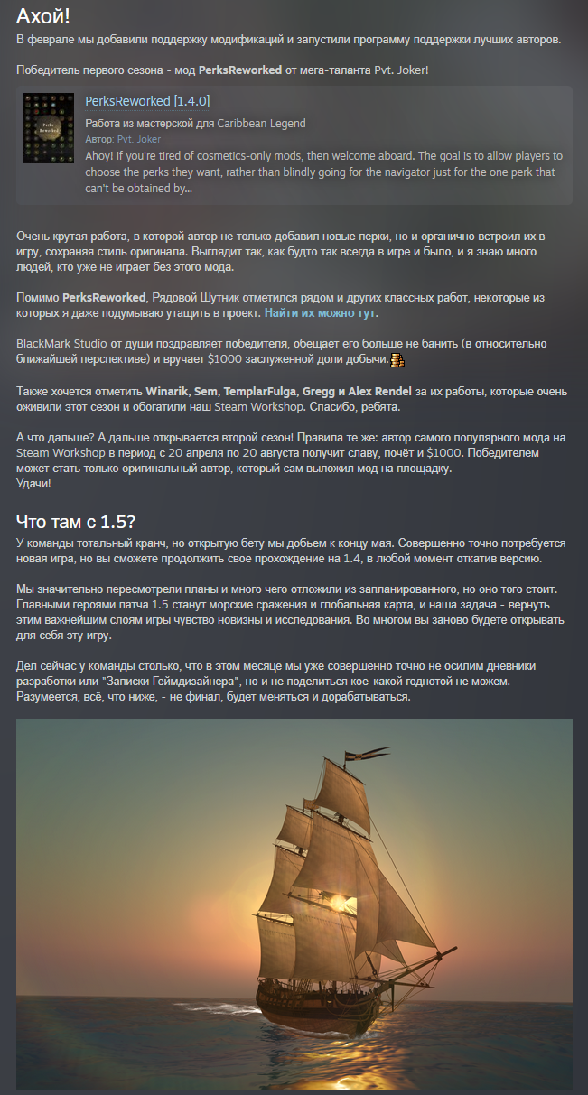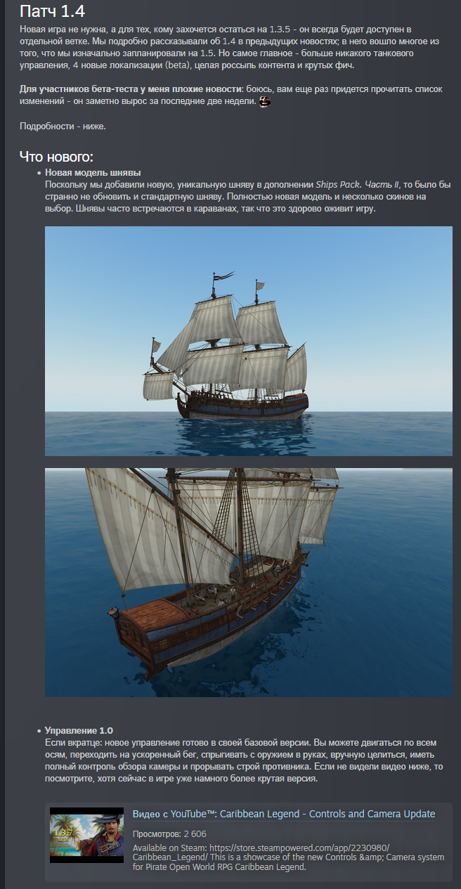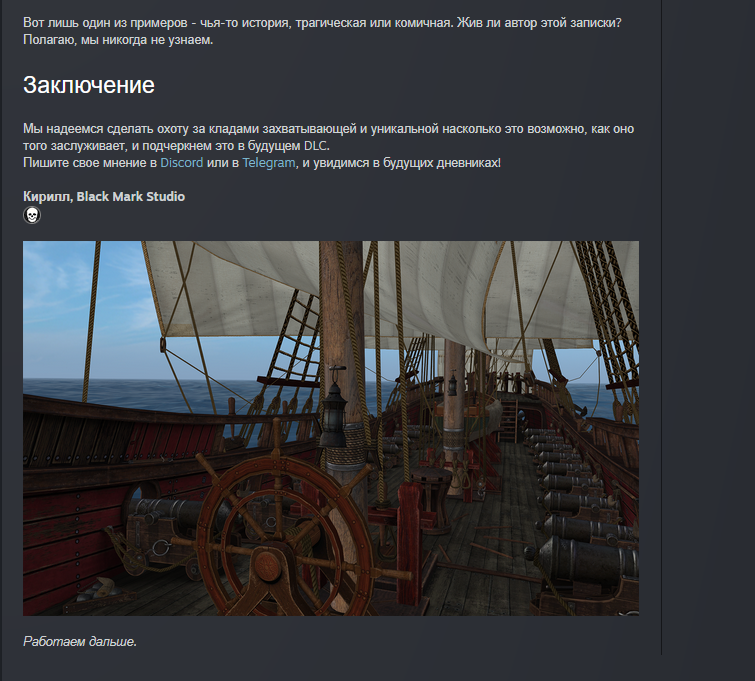 Вообще, надо бы мне дискорд заиметь, чтобы объяснять разработчикам что и как. А то совсем не соображают - ну как один матрос должен у них самостоятельно отправить корабль, тем более большой, в состояние дрейфа? К моменту, как спустит паруса, если вообще сможет, что не факт, корабль уже на другую планету уплывет.