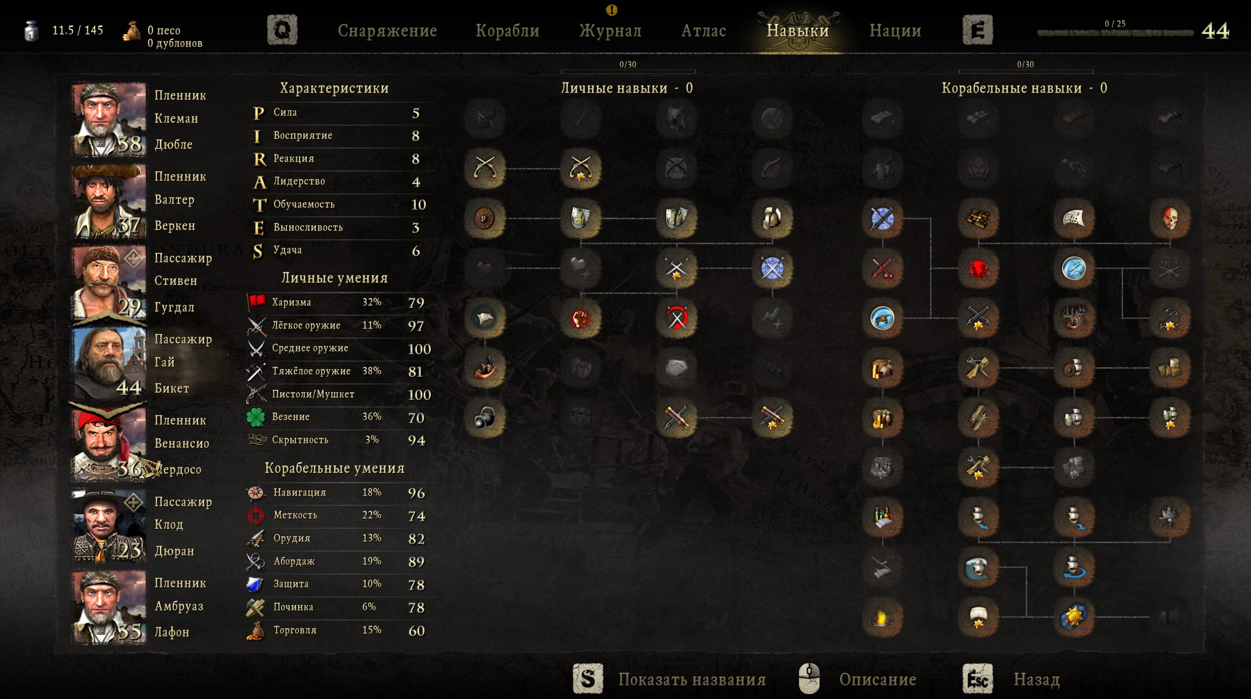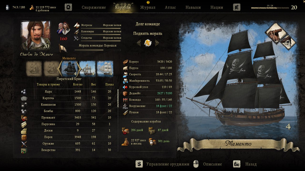 Здрав будь, аноний. Планирую закатиться в ксп, так как там есть всякие йоба карты, кастомизация нанимаемых офицеров. До этого немного пробовал рекон, выглядит куда более деревяным. В ксп правда есть васянство, которое не очень нравится (как я слышал квест целый по "чёрным парусам", который может загубить игру), но может вывезу как-нибудь. Хотел по стартовым статам спросить, сколько в этой сборке нормально иметь лидерства? Хочу играть пиратом, абордажить всяких мимокроков, угонять в рабство сдавшихся моряков и продавать контрабандистам. По сути мне нужно много слотов под офицеров. 1. Штурман 2. Канонир 3. Боцман+доктор 4. Казначей+плотник 5,6,7 - абордажники Ну ещё можно 2-3-4 капитана для создания небольшой корсарской банды. Да, я слышал, что потом, по сюжету, будут попадаться квестовые офицеры, которые вроде не расходуют слоты, но хз, когда я до них докачаюсь. Короче, выручайте. Алсо вопрос, на что скилл "Абордаж" влияет.