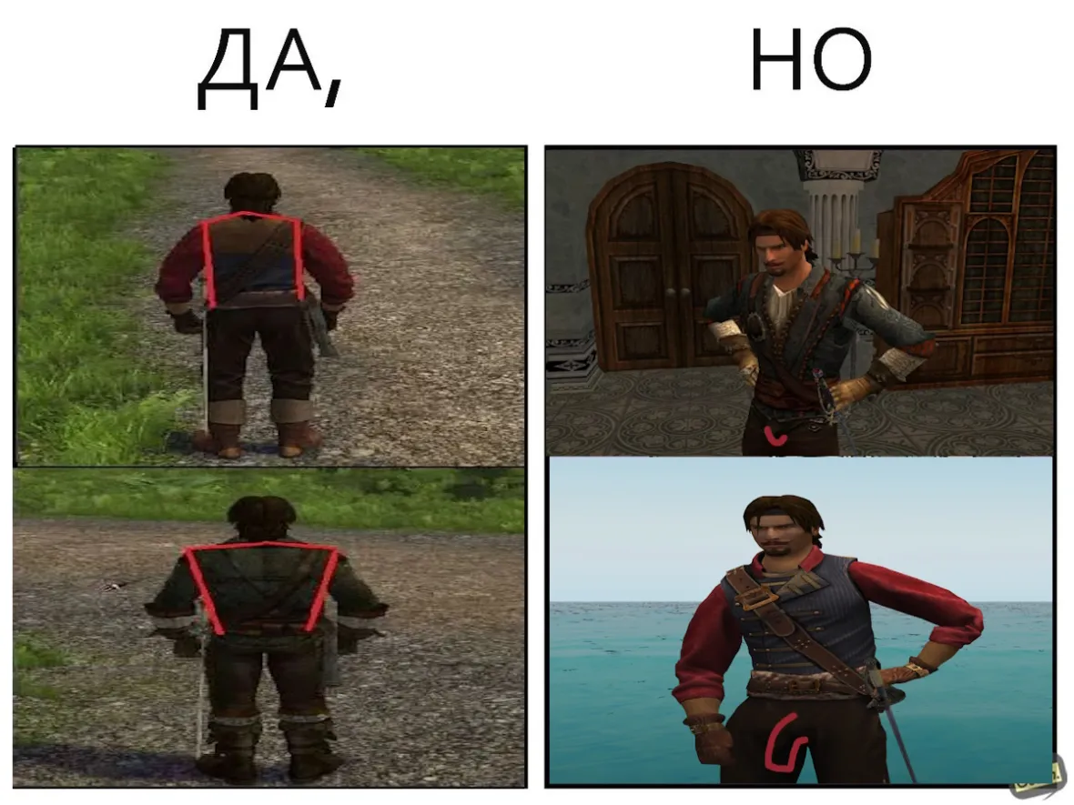 >попробовать, получить пизды или не получить пизды А, ты предлагаешь проверить собственным ебалом силу флейта в этой игре? В другой да, обычно так можно и нужно сделать, но эта не сделана с расчетом на слепое прохождение без загрузок, такого понятия не было. Видишь ли, если я подожду 12 дней или поплаваю выполняя задания целых 12 дней и ко времени отплытия флейта буду снова на Мартинике и вступлю с ним в бой, увижу ли я в подхорную трубу хотя бы примерное количество команды флейта? Конечно же нет. Мне придется подойти близко и обменяться картечью - уже тут я могу проиграть (получить гейм овер потому что без команды и парусов я уже не убегу), если я зайду на абордаж я уже не смогу там "получить пизды" и убежать. Там либо победа либо гейм овер. В любом случае "получив пизды" мне придется загрузить игру - такой тут дизайн. Нельзя как в "нормальных" играх "получить пизды" и продолжить играть пытаясь вырулить. Это игра типа "сейв-лоад".
