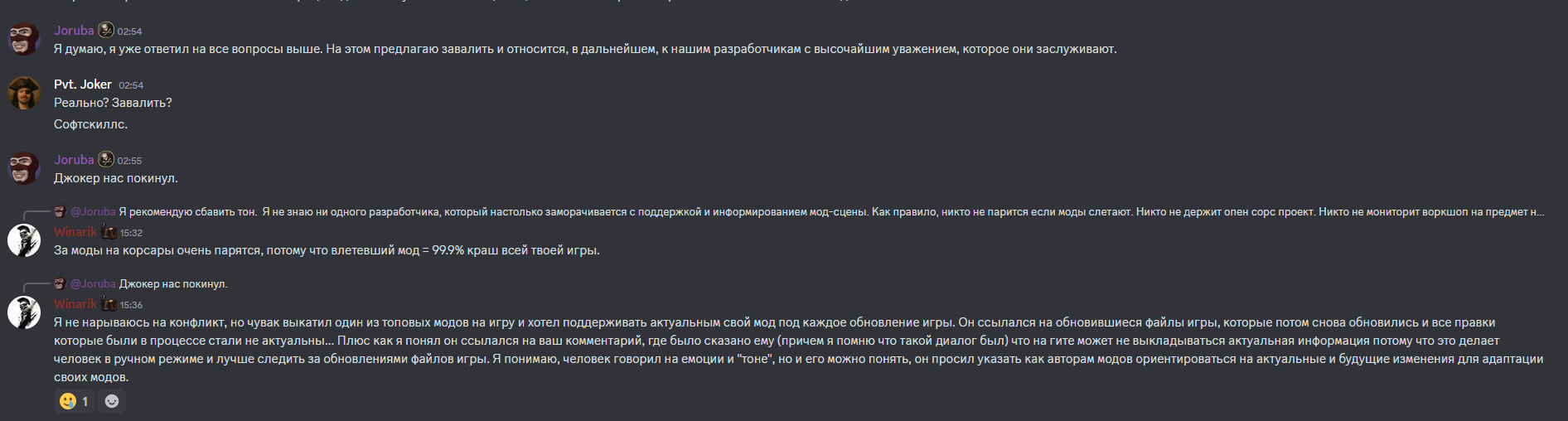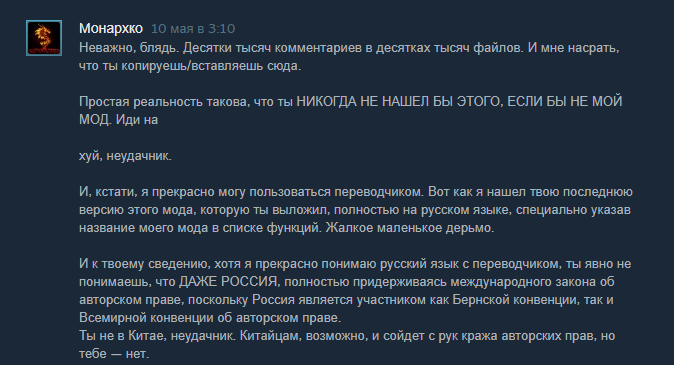 >>50032378 > расцветает куча команд мододелов, с чьих работ до сих пор пиздят фичи и квесты в новые проекты, даже спустя десятилетия Дед, это когда было?И когда они "расцветали"? Просыпайся, уже добрых 15 лет прошло. > создать монополию на моддинг корсаров В сообщении лишь написано, что Джорубе, да и в целом серии выгодно наличие модов, это расширяет аудиторию и количество денег у него в кармане, ну и возможность заработать хоть какие-то нормальные деньги моддерами. Про львиную долю прибыл, а подачки моддерам ты это откуда взял? Инсайды? Сейчас капитализм, если условия невыгодны, они могут и не работать, а мы не поддерживать рублем ушлых кабанчиков и моддеров.