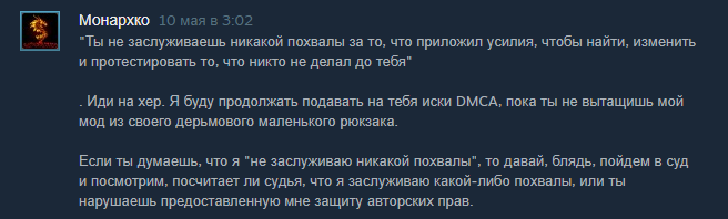 >полно подобных лазеек Стим по первому шухеру закрывает страничку игры до разбирательств. Впрочем, учитывая, что йоруба и так предлагал им выход в стиме, я сомневаюсь, что захочет банить. Скорее уж навалы придут по душу шанкса. Леофеям лучше не петушиться лишний раз, если реально есть планы на стим.