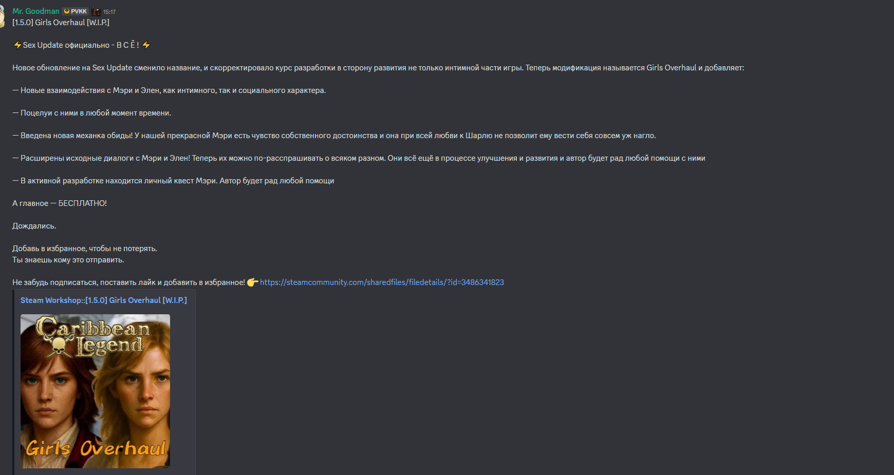 Сейчас: >Ушлый маркетолог пытается собрать всех модеров под своим крылом, создать монополию на моддинг корсаров, сделать его платным и продавать это все мамонтам по цене ААА игр, львиную долю прибыли - себе, модерам - подачки.