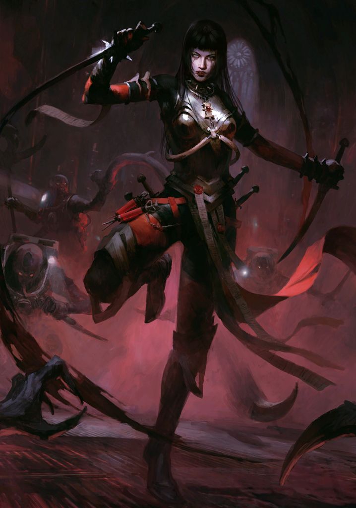 Был рассказ в котором на сторону Нургла пал космодес и чуть не сделала этого одна из сестёр — "Daemonblood", Каунтер. Есть рассказ "Heart and Soul" от Сваллоу. Аббнет писал про Сабатиэль в "The Invitation".