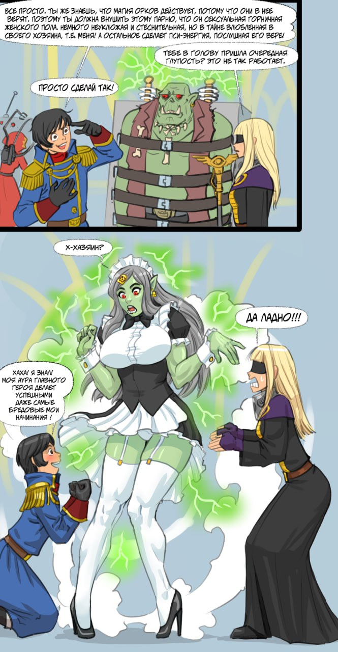 >Десантный челнок встряхивает от неожиданного скользящего попадания из зенитного орудия, томик «Тактика Империум», выполненный из отборного свиного пергамента, падает аккурат между ног Арженты, "Я такая неуклюжая", содрогается сестра битвы. >Сражаясь с турбулентностью, вы поправляете фуражку, подходите и запускаете руку промеж ее бедер, "Сомнение в себе есть сомнение в Империуме", улыбаясь замечаете вы, возвращая том.