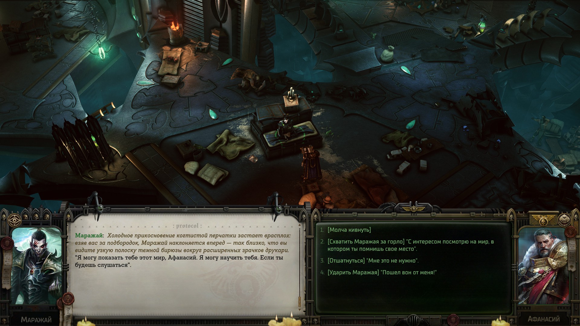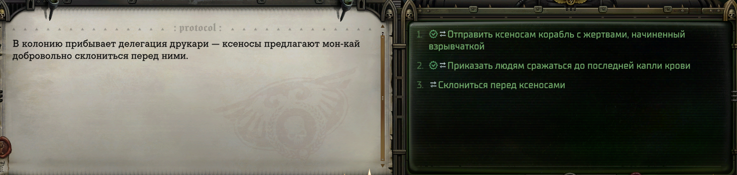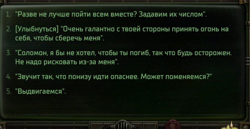 >>50023496 Речь про Минорис перед бункером, там два варианта: отпустить еретиков с дедом или без. Заметил, на логику в диалогах положили сразу же после вступления, перестал выбирать любые варианты c убеждениями.