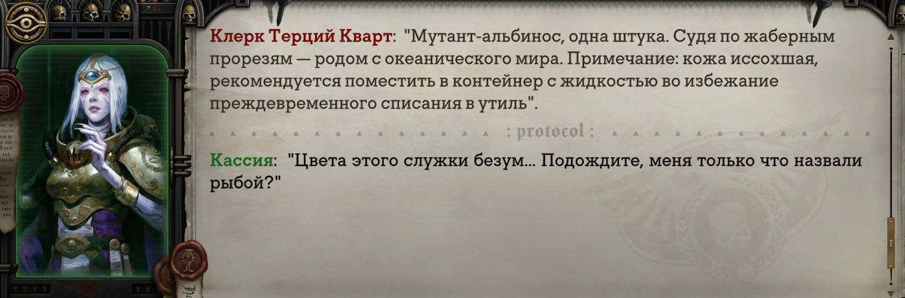 КАЖДОМУ ВАХАЕБУ, ВАХАФАНУ, ЗАЛЕТУХЕ И ЗНАТОКУ ЛОРА ЧИТАТЬ ВНИМАТЕЛЬНО: Совокоты известны крайней разношерстностью своих сюжетов — в одной игре может сочетаться как аниме/трансухи/соя так и самые базированные персонажи. А также известны своим вольным отношением к сеттингу: с Вахой это может вызвать горение жоп. Воспринимайте Rogue Trader как неканоничное произведение или фанфик. Хотите 100% следования "канону" — идите почитайте рулбук.