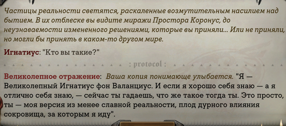 Так, важный вопрос - а простор Коронус со всеми упомянутыми древними знатными родами до Разбойного Дельца вообще существовал в лоре? Или его придумали только чтобы Соекiтам дать песочницу? Второй вопрос - в концовке игры прямо сказали что события игры подготовили более важные события, но это уже другая история. Дарк Хереси получается тоже в Просторе будет спустя n лет? И как они все разнообразные концовки РТ сведут к одному знаменателю, интересно? По методу Тодда Говарда? Или с загрузкой сохранки?