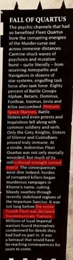 На пике вырезка из кодекса про актуальный лор с походом Индомитус Жиллимана. Корраптятся и сёстры и примарисы.