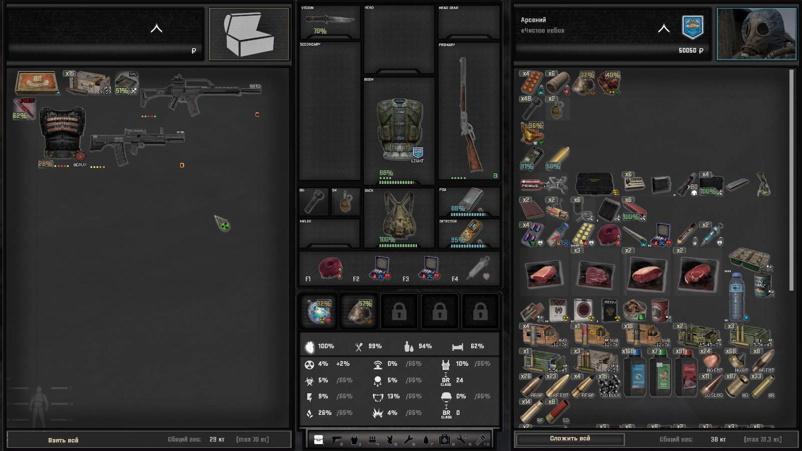 Ндыа, че та artefact hunting такое себе, почти половину того, что в схроне вытащил литерали за один ран, дальше почти нихуя, выброс не выброс, спишь на другой локе, не спишь, поебать. Ну и еще какое то количество артов пошло с наград за квесты на нашивки, ну там пару штук всего.