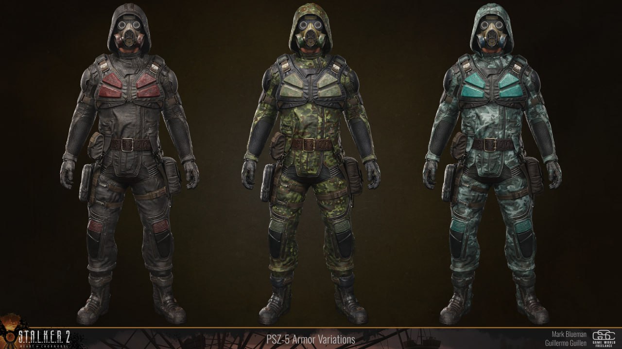 Костюм "ПСЗ-5" из неанонсированного мода команды Czech Team, который можно будет заметить в игре на вольных сталкерах, у бойцов новой группировки Пламя, Грех, у Долга и Свободы, и даже у самого Стрелка.