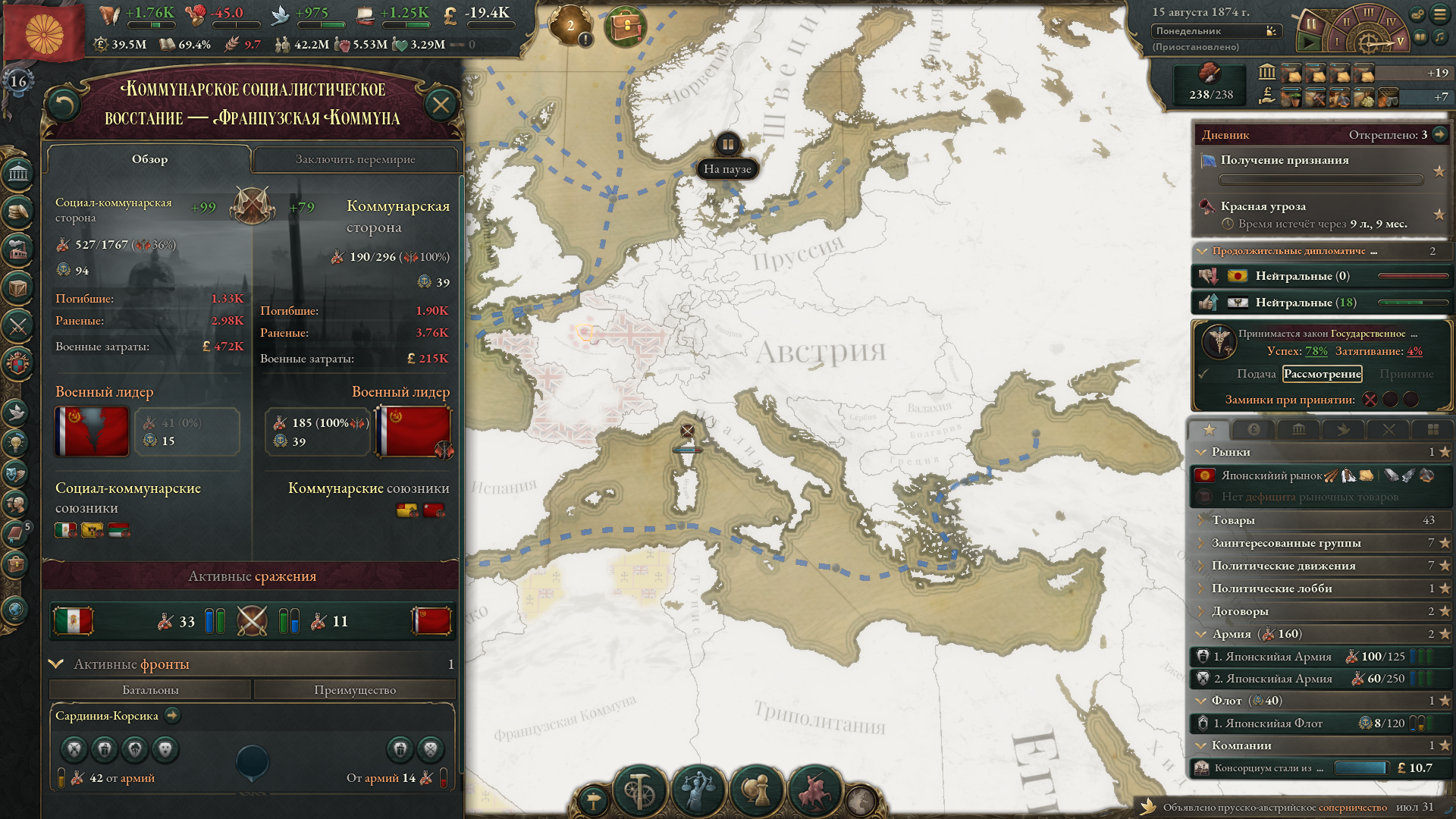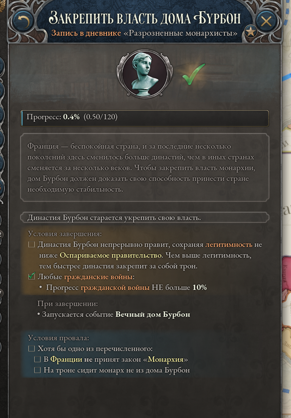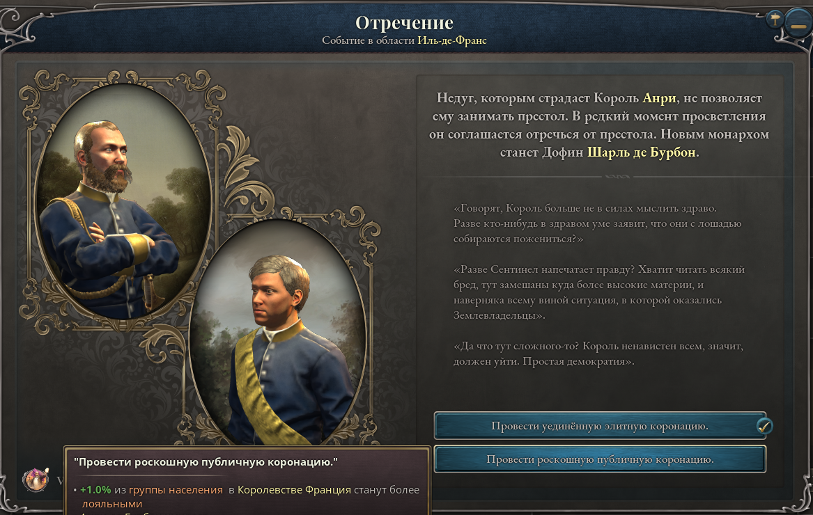 >>50018932 Вот по этой механике нужно балансировать между орлеанистами (июльская конституционная монархия), бонапартистами и легитимистами (абсолютная монархия). Ниче особенного, ивенты случаются, можно переманивать генералов на сторону легитимистов отдельной кнопкой и шкала заполняется зависимо от построенных домиков. Орлеанисты балдеют от промки, легитимисты от аграрки, а бонапартисты от казарм.