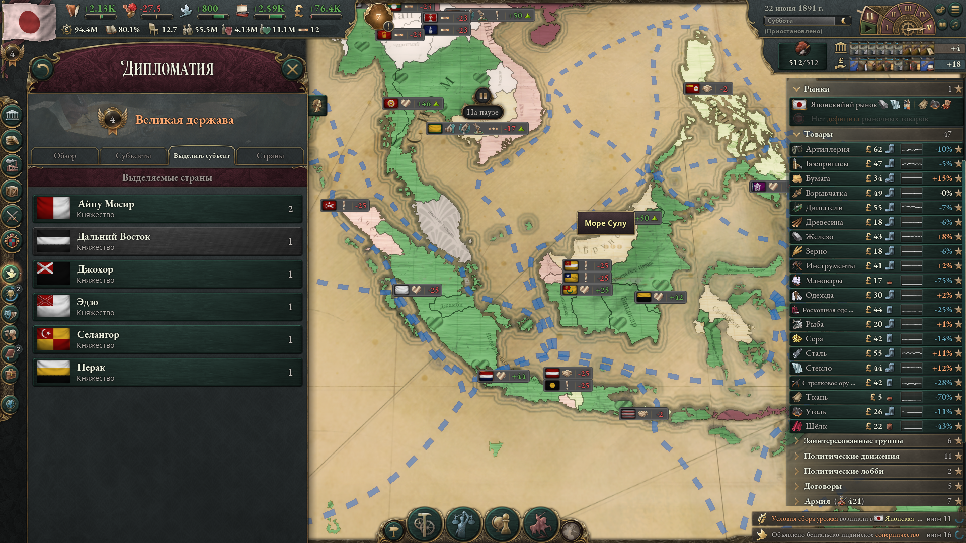 >>50047628 Проблема этой продуктовой идиллии в том, что постройка продовольственного сектора притормаживает застройку промышленного сектора, но это не самое страшное; если у тебя до сих пор крепостное право, ты усиливаешь аристократов и святош, потому что зерно тоже строится. Короче говоря, пипл хавает, но ты попросту ввергаешь страну в лоно монархизма и православия.