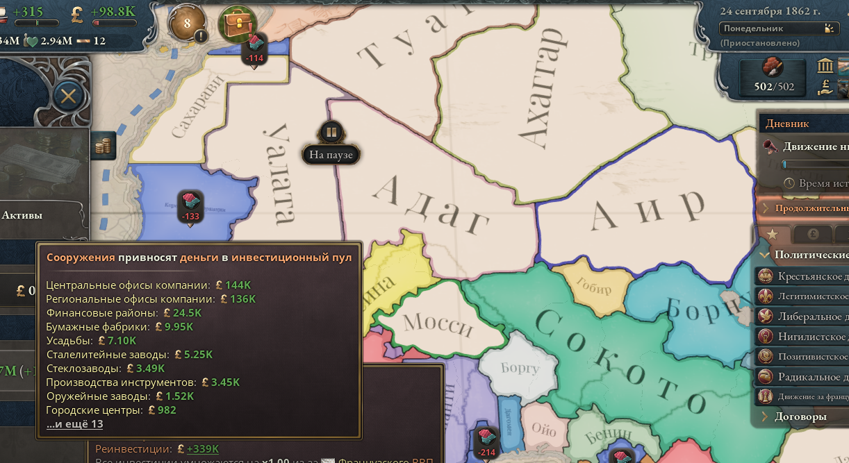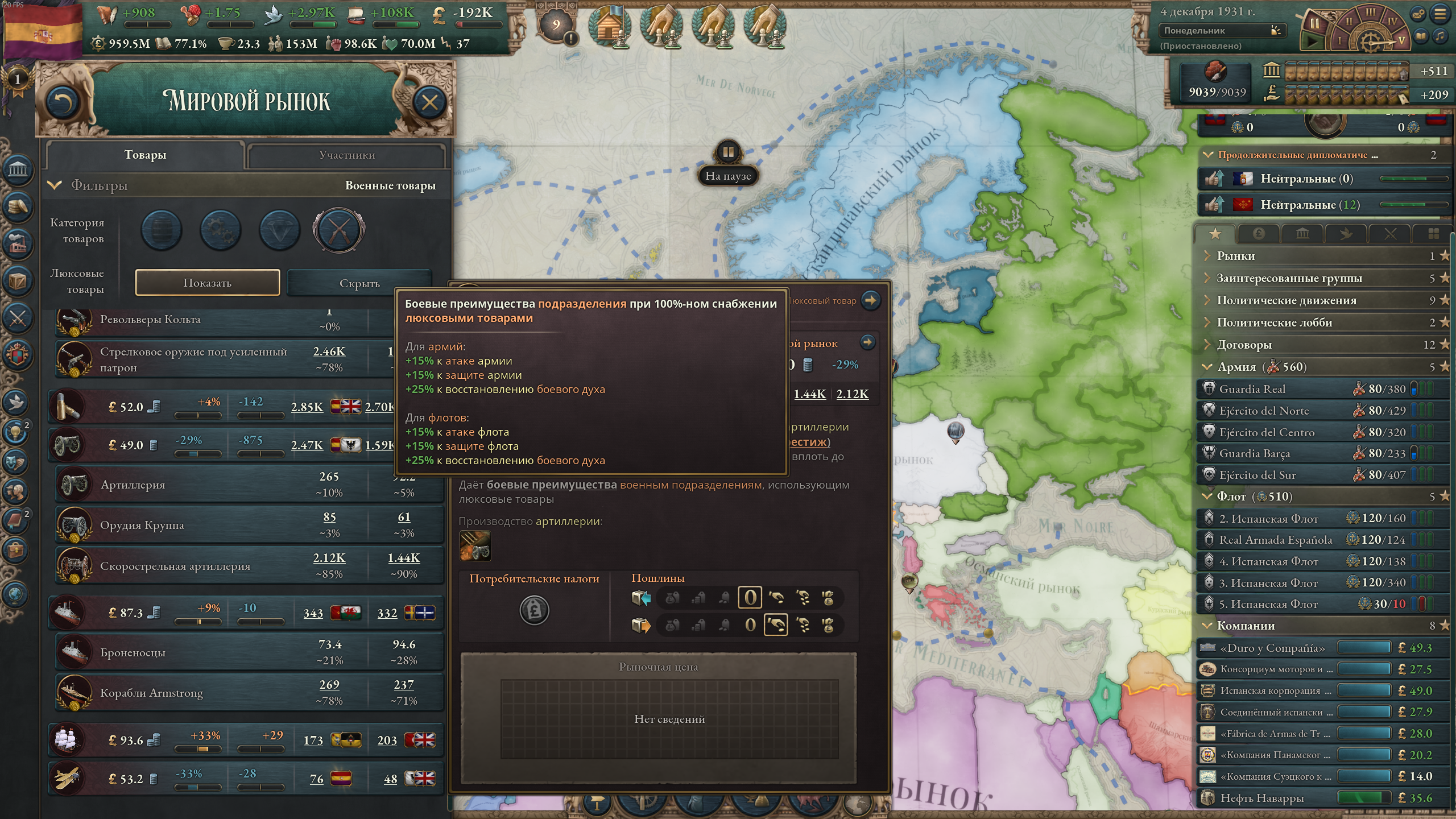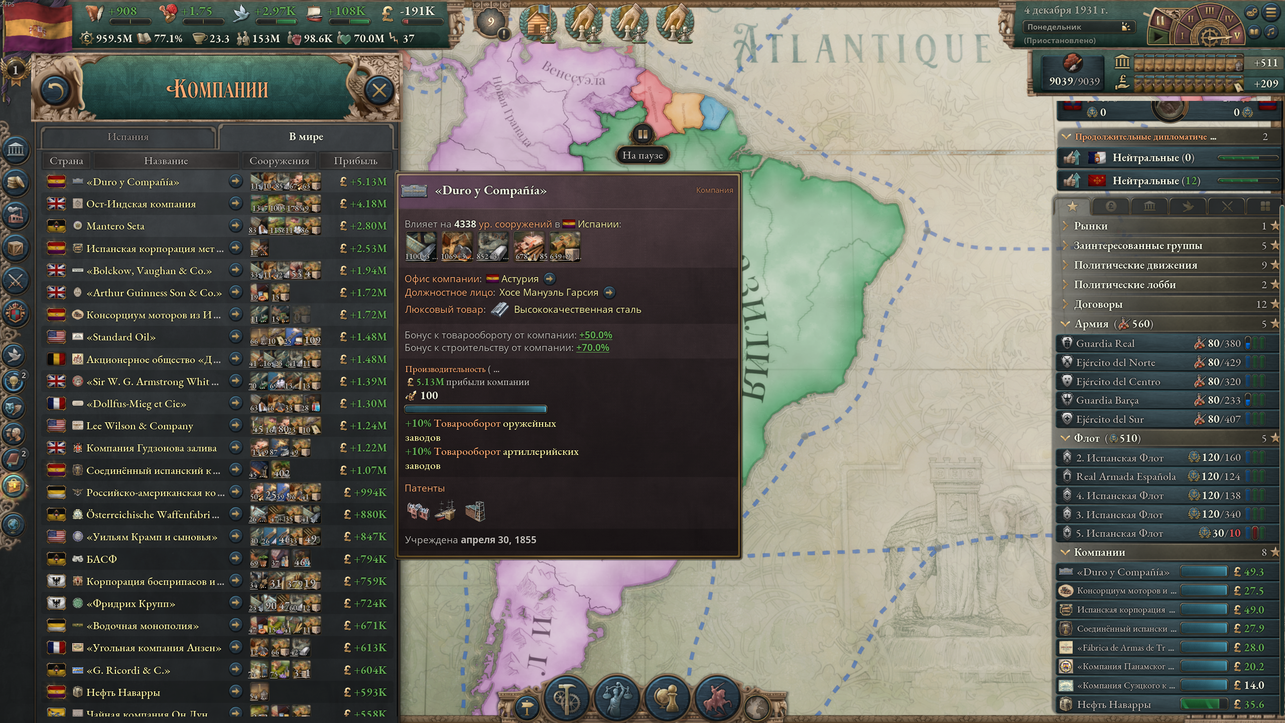А че так компании понерфили? В мире сейчас только Ост-Индская компания с прибылью 98к, потом моя Российско-американская с прибылью 6к, потом все остальные еще хуже. Не может такого быть, чтобы на начало 19 века в мире было полдесятка нищих компаний.