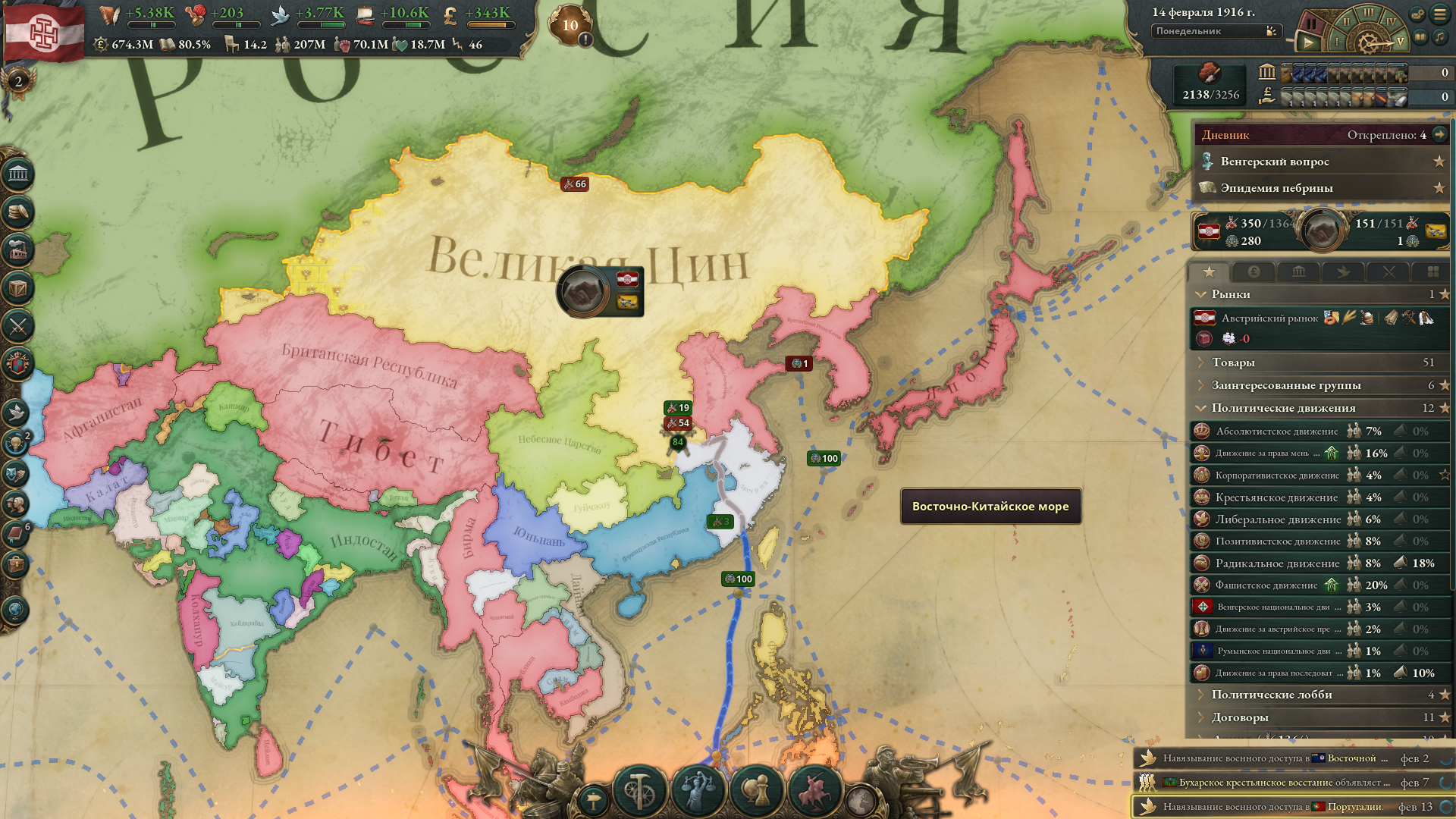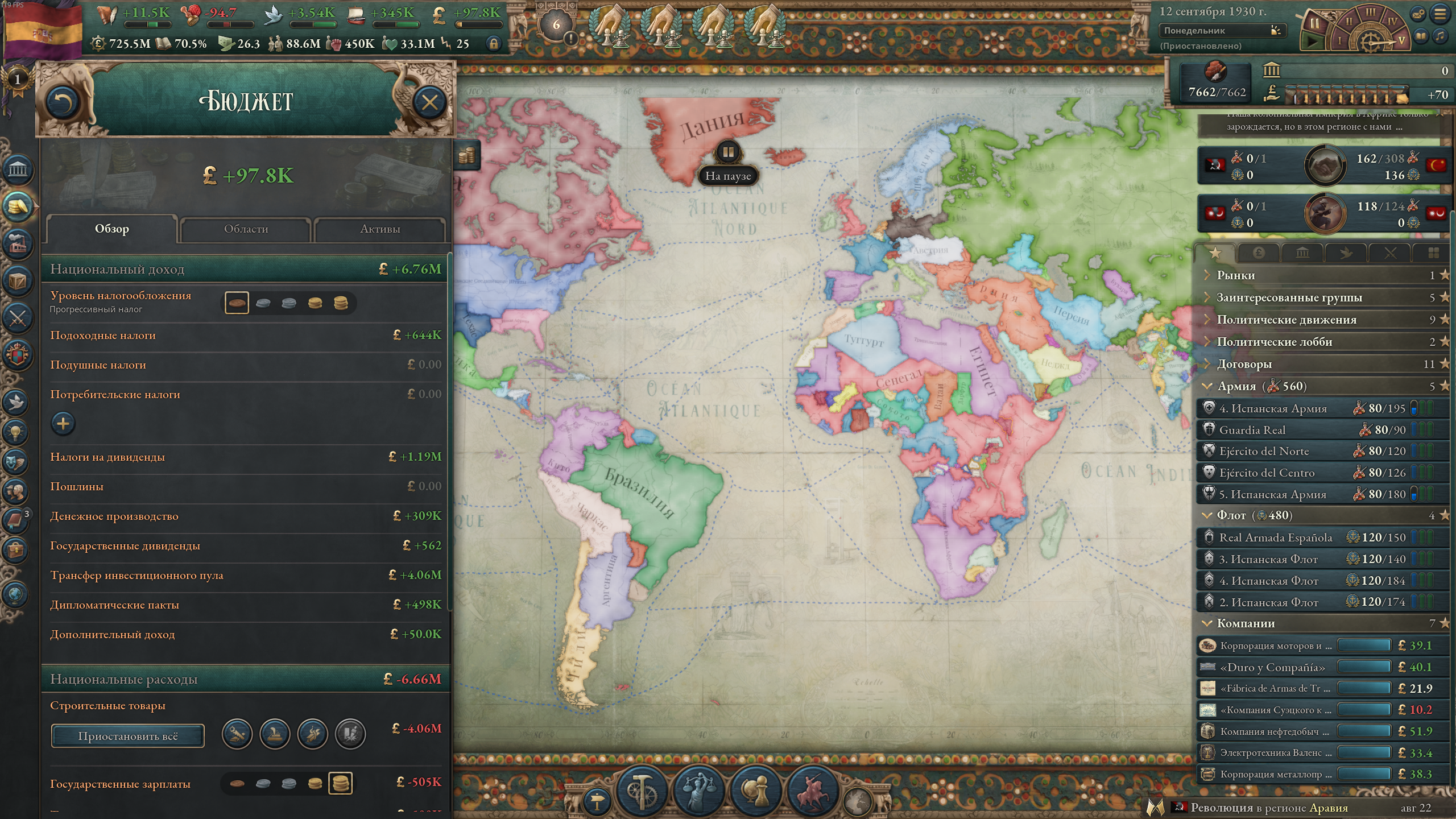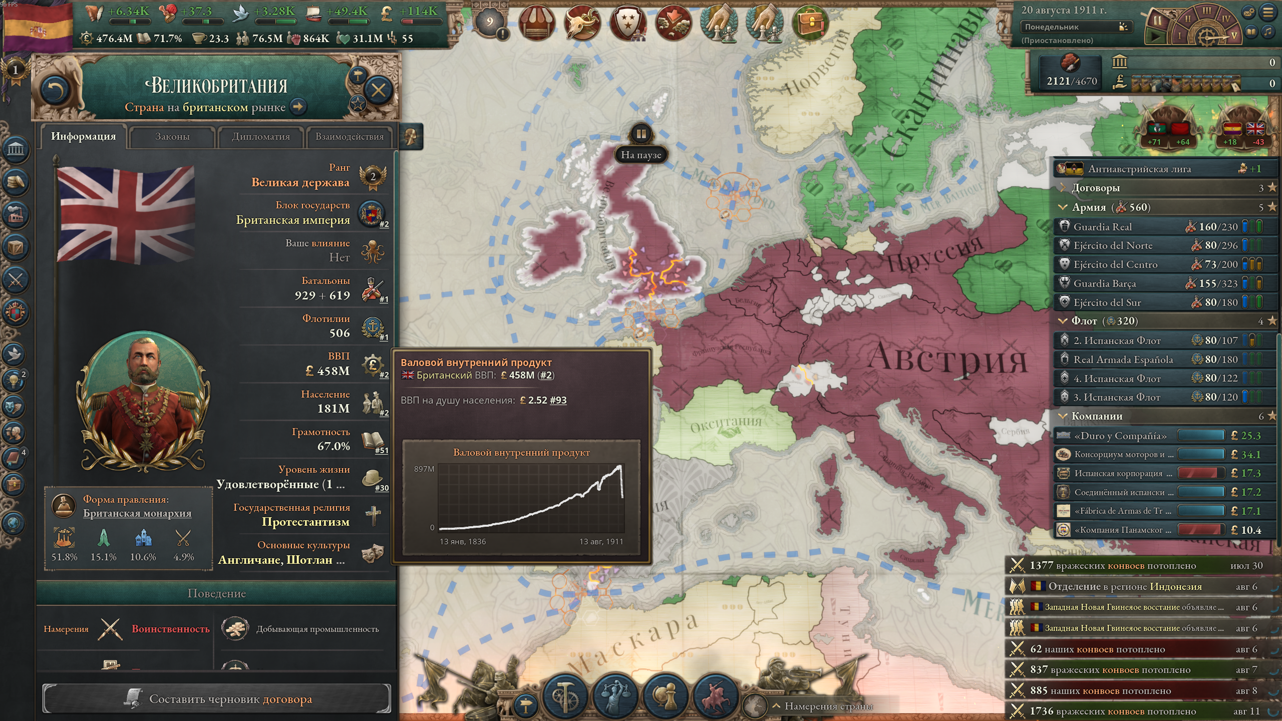 А че так компании понерфили? В мире сейчас только Ост-Индская компания с прибылью 98к, потом моя Российско-американская с прибылью 6к, потом все остальные еще хуже. Не может такого быть, чтобы на начало 19 века в мире было полдесятка нищих компаний.