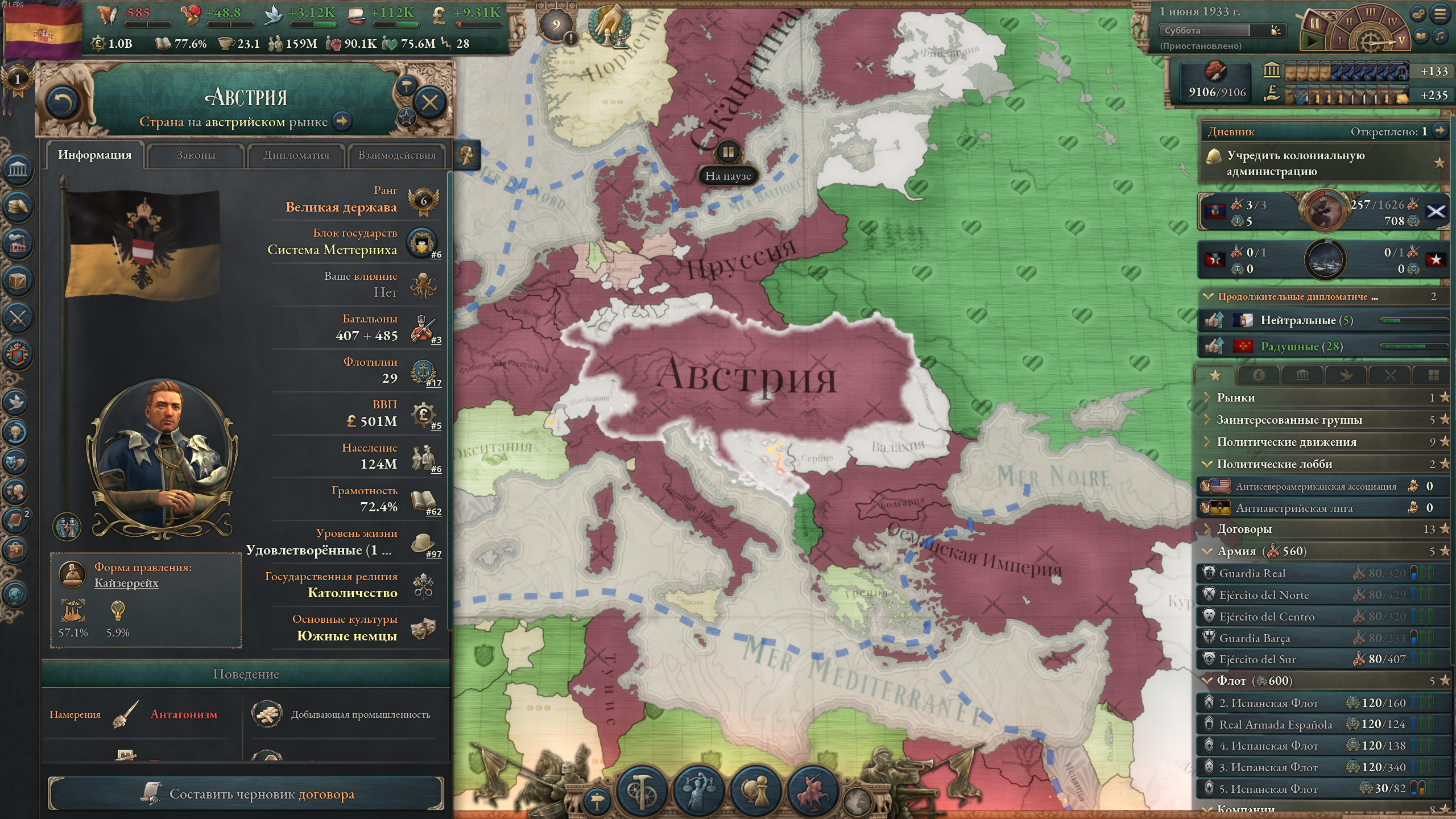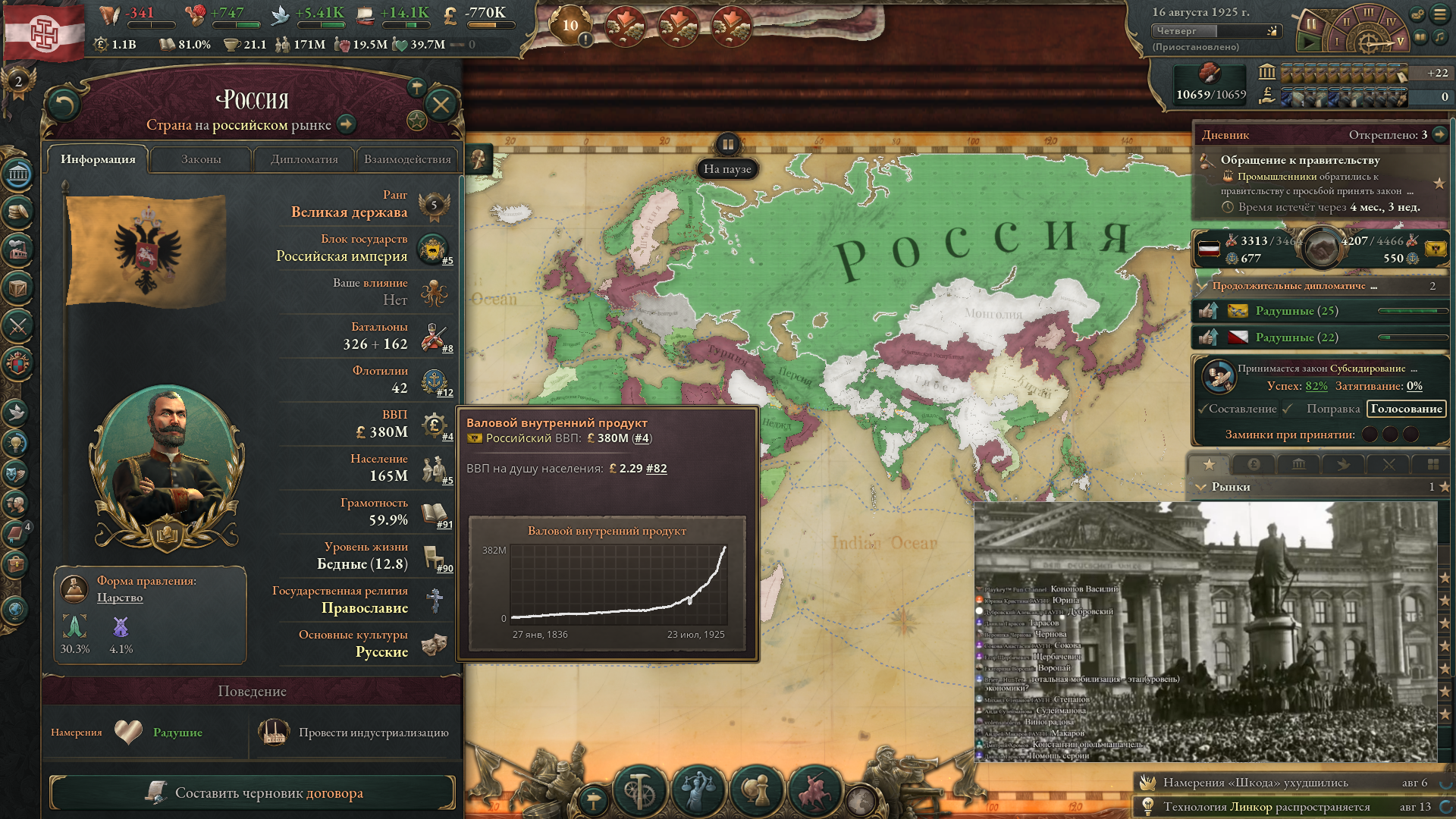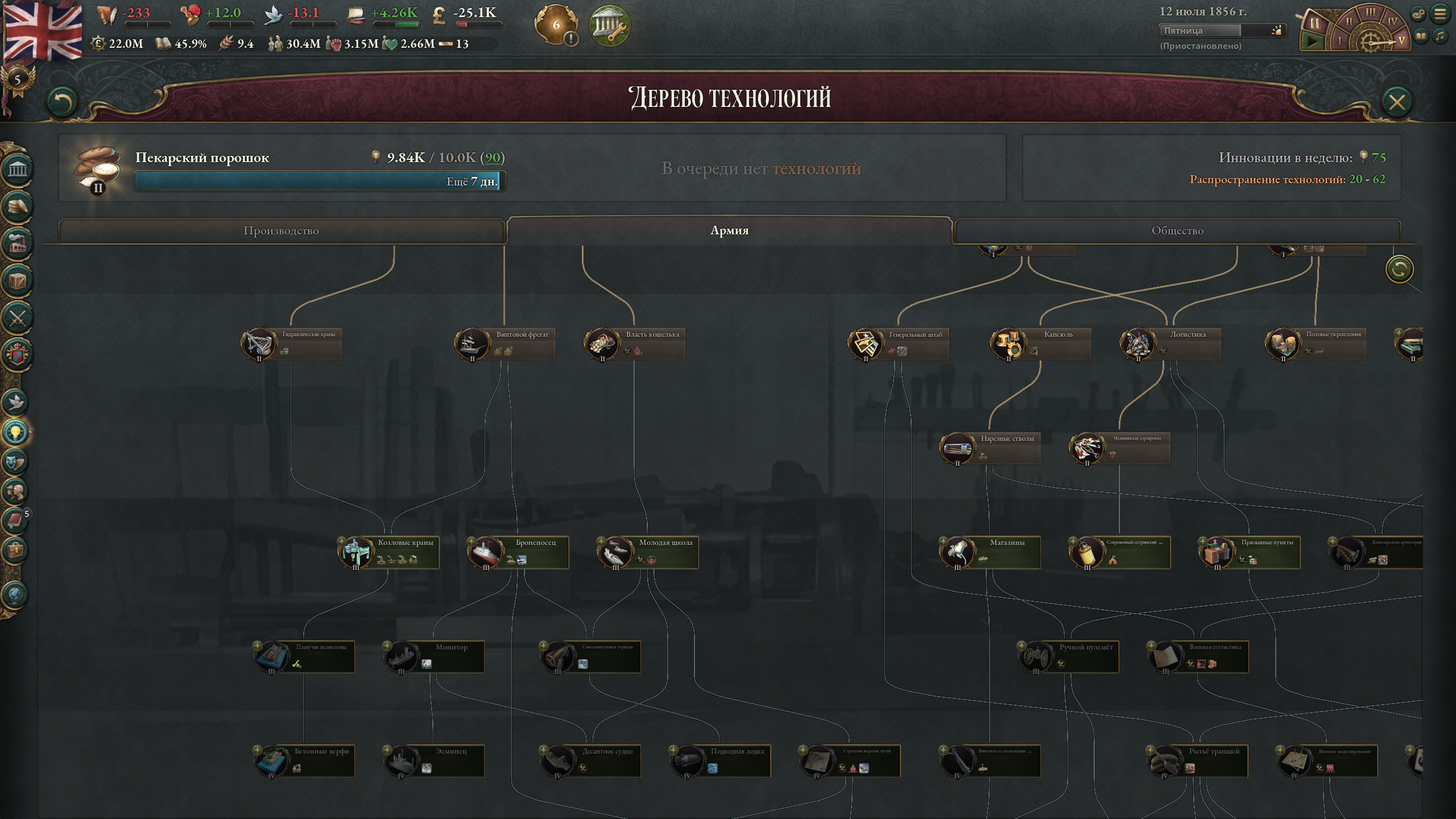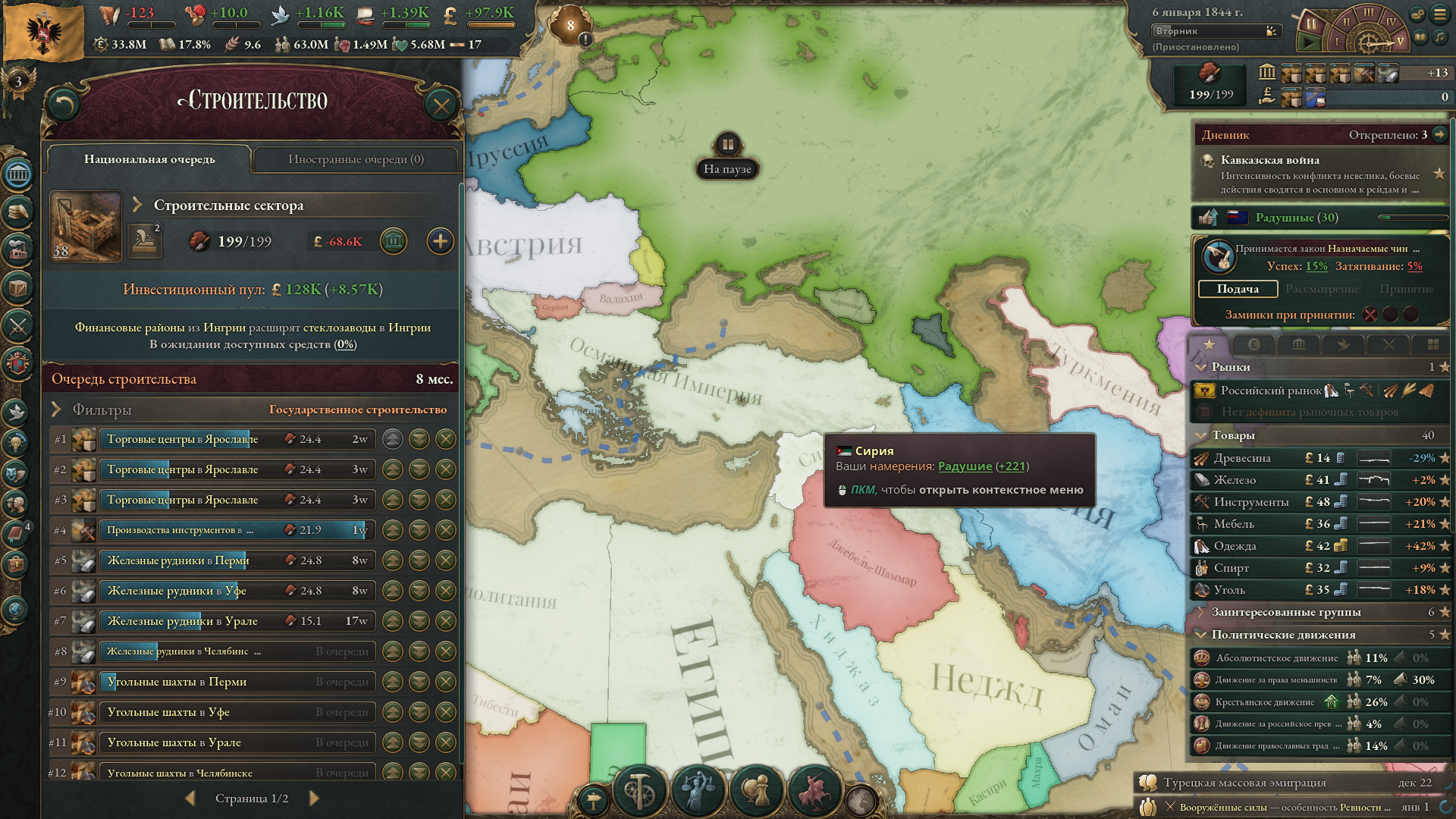 >>50047573 Не забывай еще православных держать в 20 влияния и +10 отношений чтобы еще 5% рождаемости было. И обязательно надо первой техой открывать фармацевтику чтобы брать гос. медицину первым.