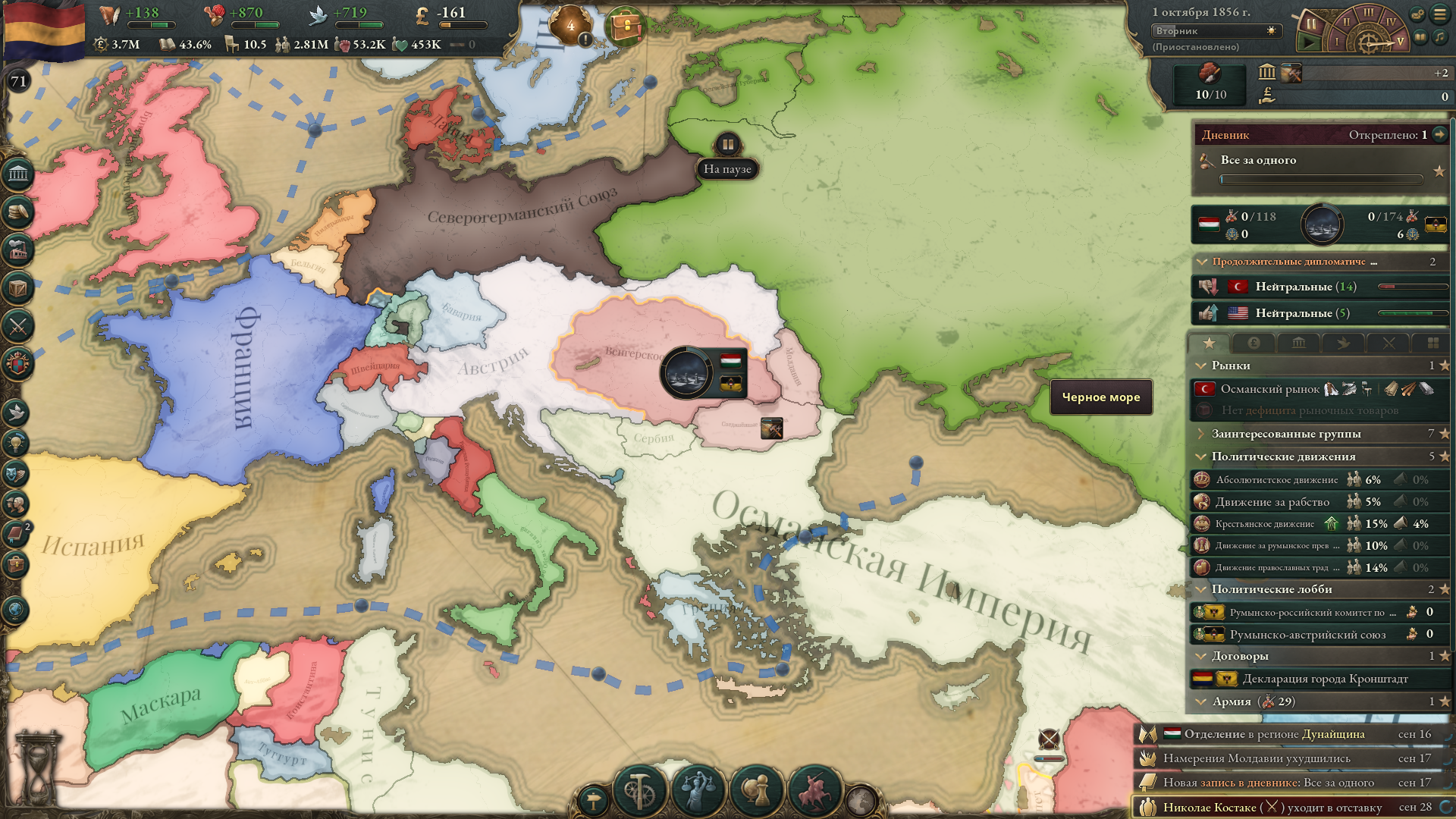 >>50048762 Я сейчас две партии (не с того же сохранения, а через новую игру) прогнал до 1849-50 года, оба раза удалось мирно отменить крепостное право и еще несколько приятных законов принять.