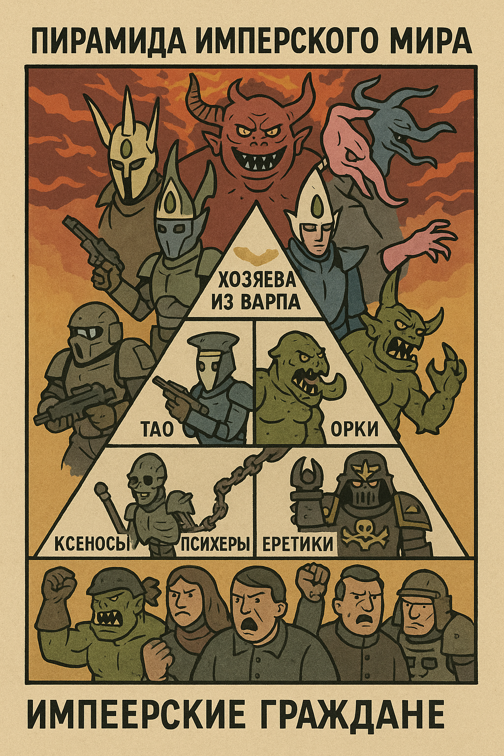 > ведь Эреб нихуяшеньки не придумывал, а просто использовал методичку империума прописанную для таких случаев (того самого империума который с причмокиванием зарылся по самые гланды в технологии Лаэран)
