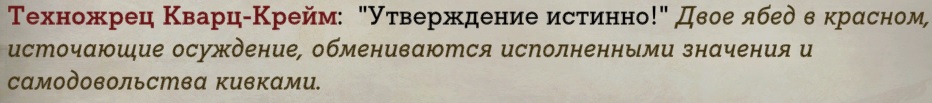 Если увидаем мы, как Захару нехорошо, так последние кости долой с торса – «Носи, наставник!» Нам, личухам, и мифический уровень в горло не лезет, коли Захара нужда грызет! А кто супротив него лезет, кто планарные разрывы разводит по Голариону – того мы вот так: за шеяку – и к столпу черепов! Потому что разрывы выгодны рабам цикла душ, демонам мятеньким, да фаразмитам поганым. Тем, кто как суккуба в постель лезет нашу. Кто какашкою грифоньей в кашу норовит из-под неба упасть. Чуждо нам это! Не те сказки нам Арилу баила в лаборатории! Иные песни мы в пятом крестовом походе запевали!