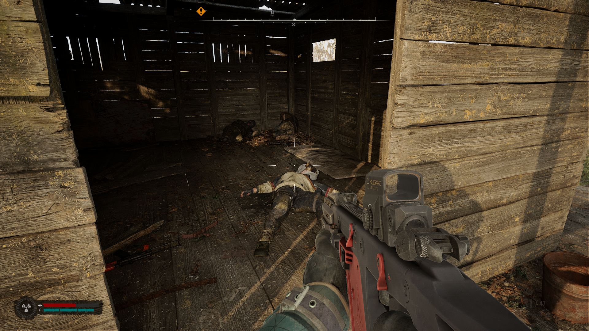 Ну он же подохнет от еще одного выброса но вместо того чтобы валить из зоны он прётся за Стрелком в центр