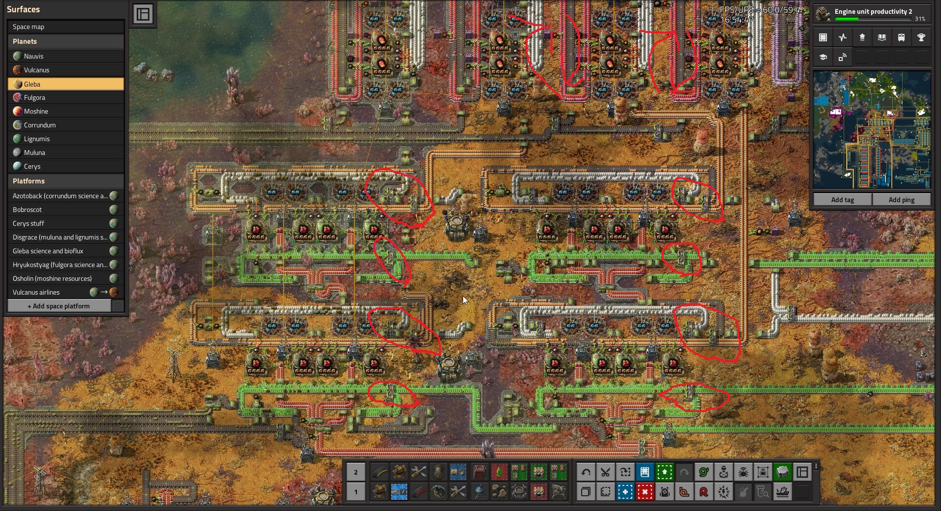 Есть какие-то концептуально другие идеи по фульгоре? Хочу делать фул белт науки, пока сортировка скрапа как на пике и потом развоз по островам обработки/удаления. Вожу батарейки с вулкана ибо не хватает их пипяу и мне для белта банок надо примерно 40 белтов скрапа крутить, что трудновато, когда на пике оно ели-ели почти 8 белтов хавает. А я еще 4 таких больших острова вряд-ли найду. Но я так понимаю искать придется ибо скоро наебнется местная руда, так? Квалити на данный момент успел сделать только рарити модули, остальное на очереди, но чувствую принципиально ничего не поменяется до глебы и столбиков...