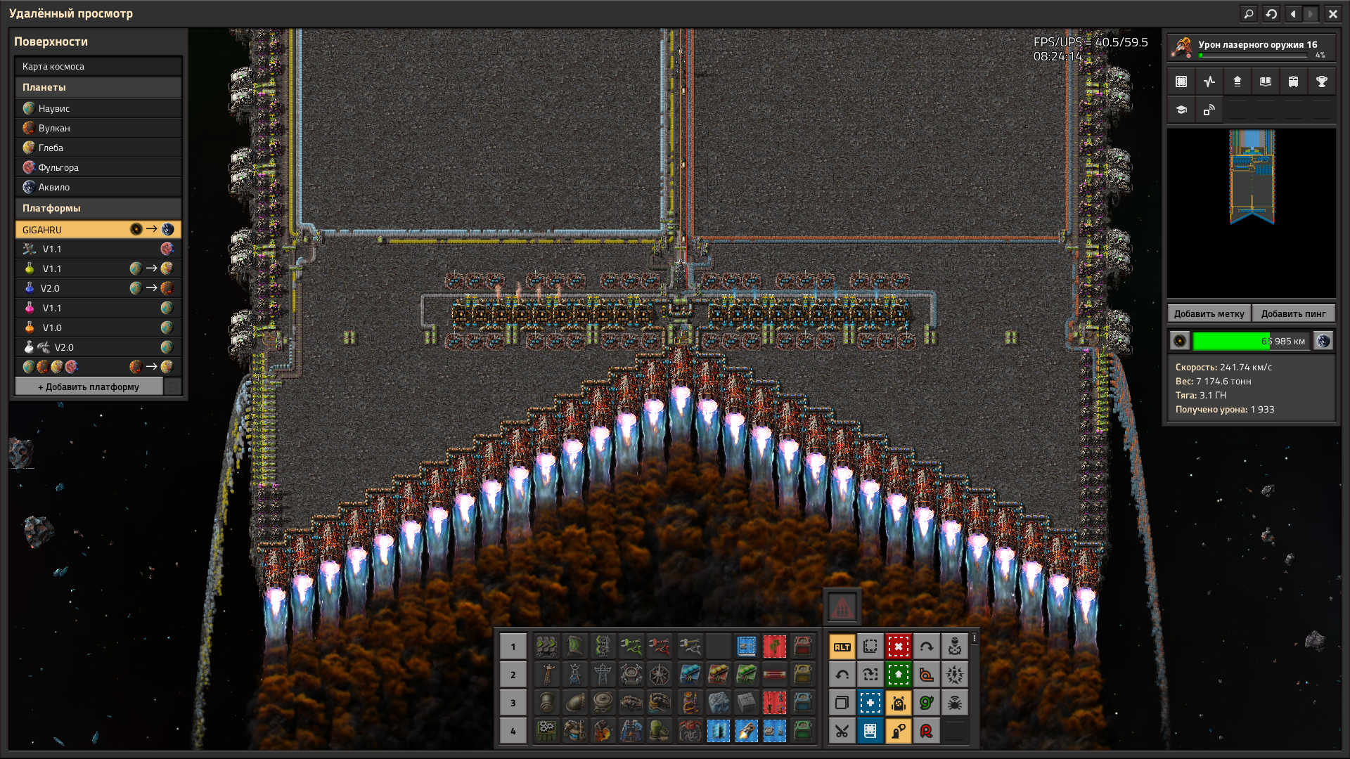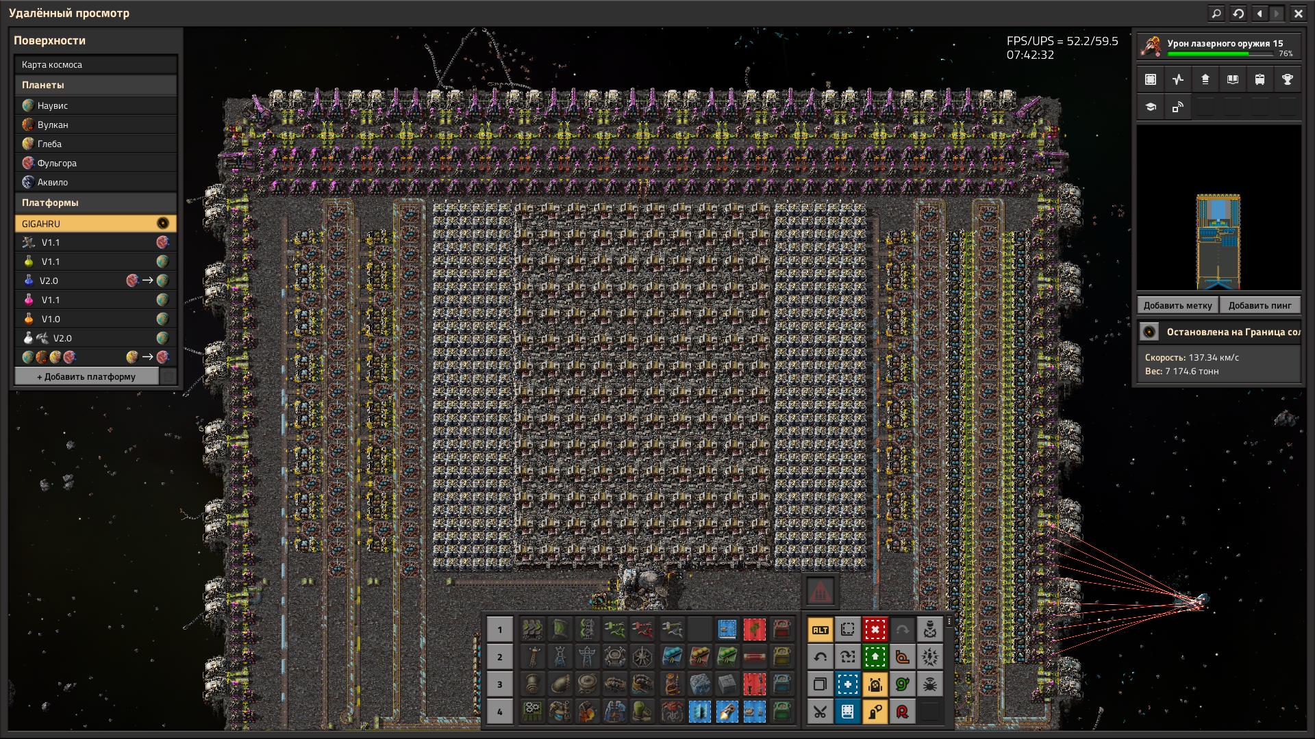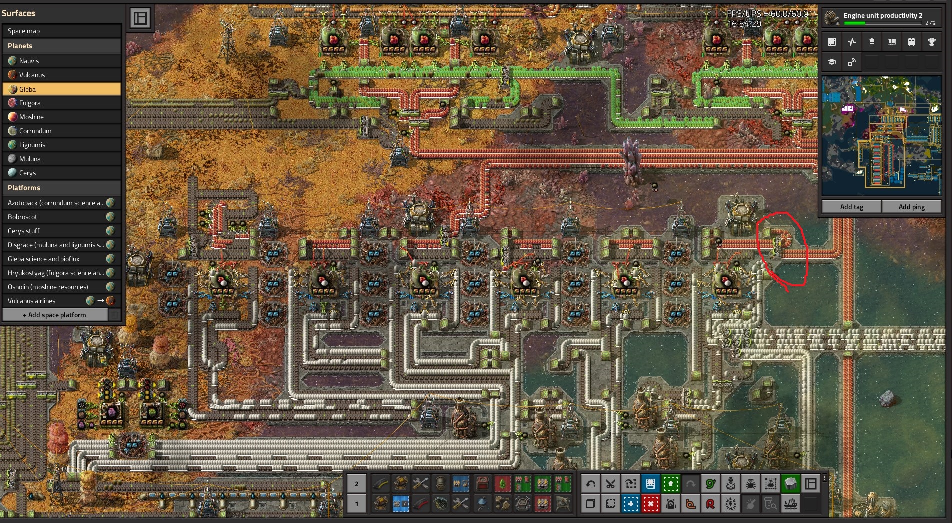 >>50064083 >>50064087 Хочу занюхать каждую планету отдельно, а потом уже делать лям науки или сколько там. Энергия на фульгоре как и задумано, столбы и аккумы. Там её в двух местах всего не хватало особо, но я просто дохуя аккумов рарных наебошил как на пике и ладно.