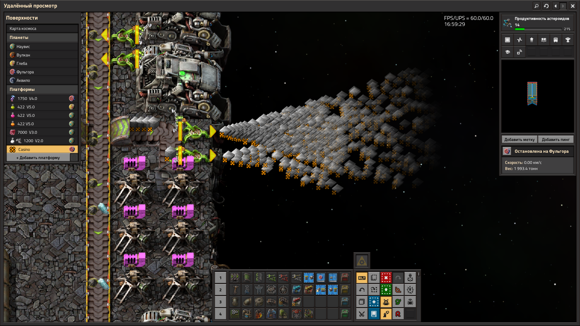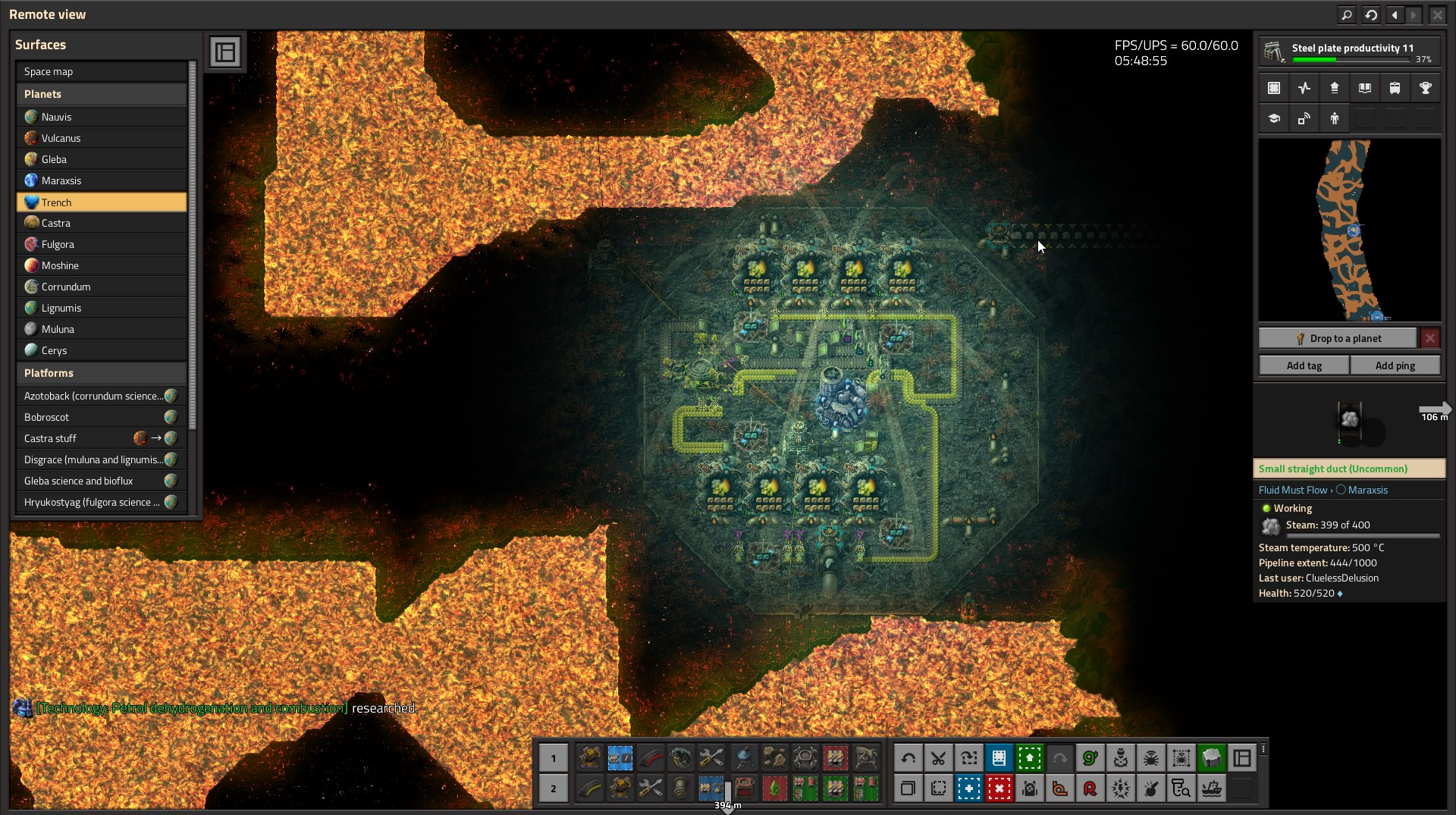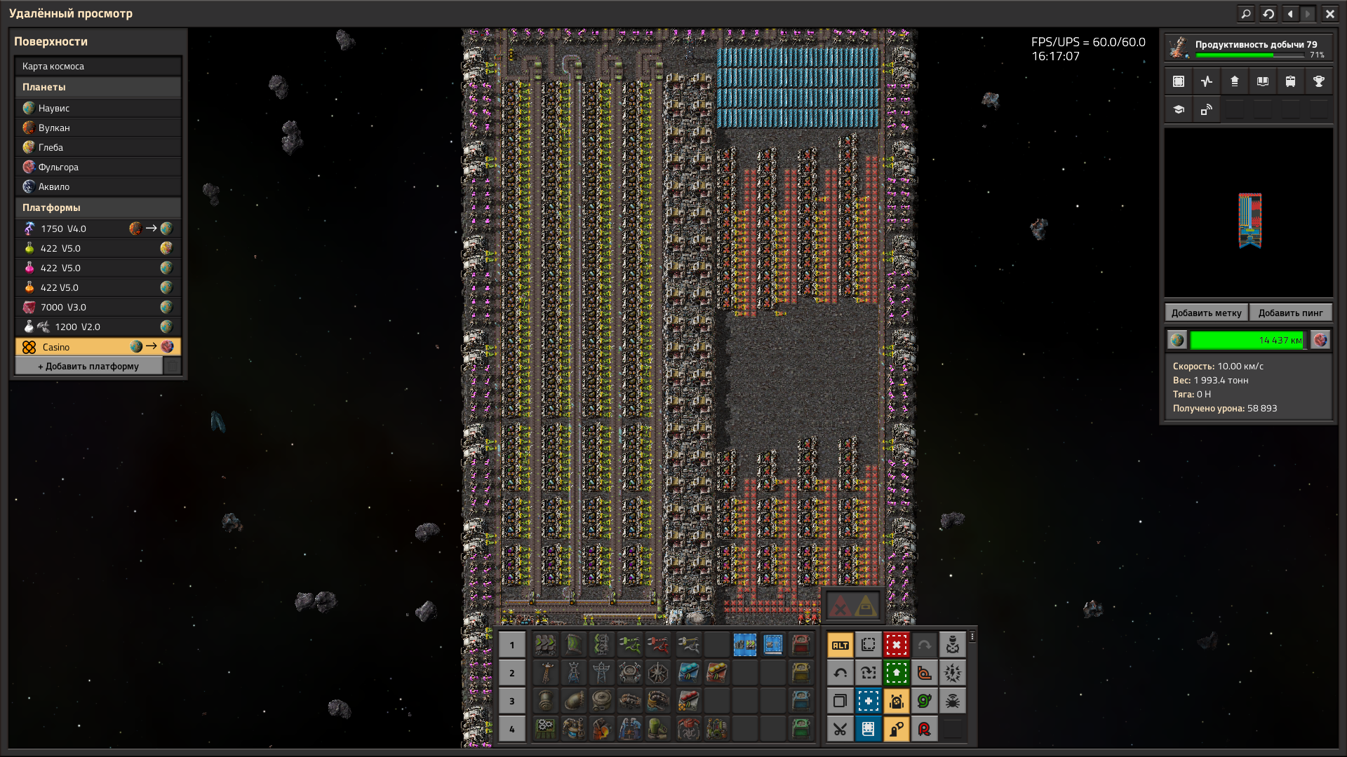 >>50064083 >>50064087 Хочу занюхать каждую планету отдельно, а потом уже делать лям науки или сколько там. Энергия на фульгоре как и задумано, столбы и аккумы. Там её в двух местах всего не хватало особо, но я просто дохуя аккумов рарных наебошил как на пике и ладно.